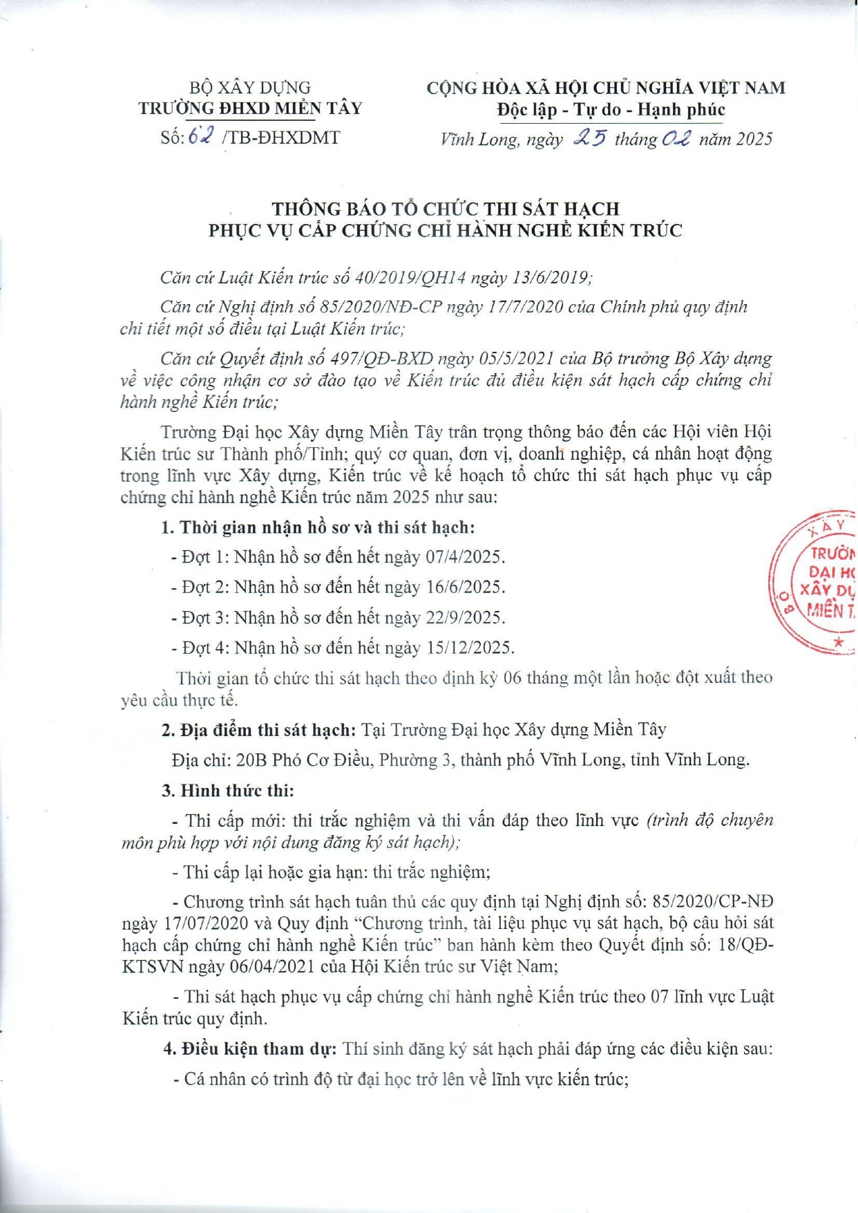 Tổ chức sát hạch phục vụ cấp chứng chỉ hành nghề kiến trúc năm 2025