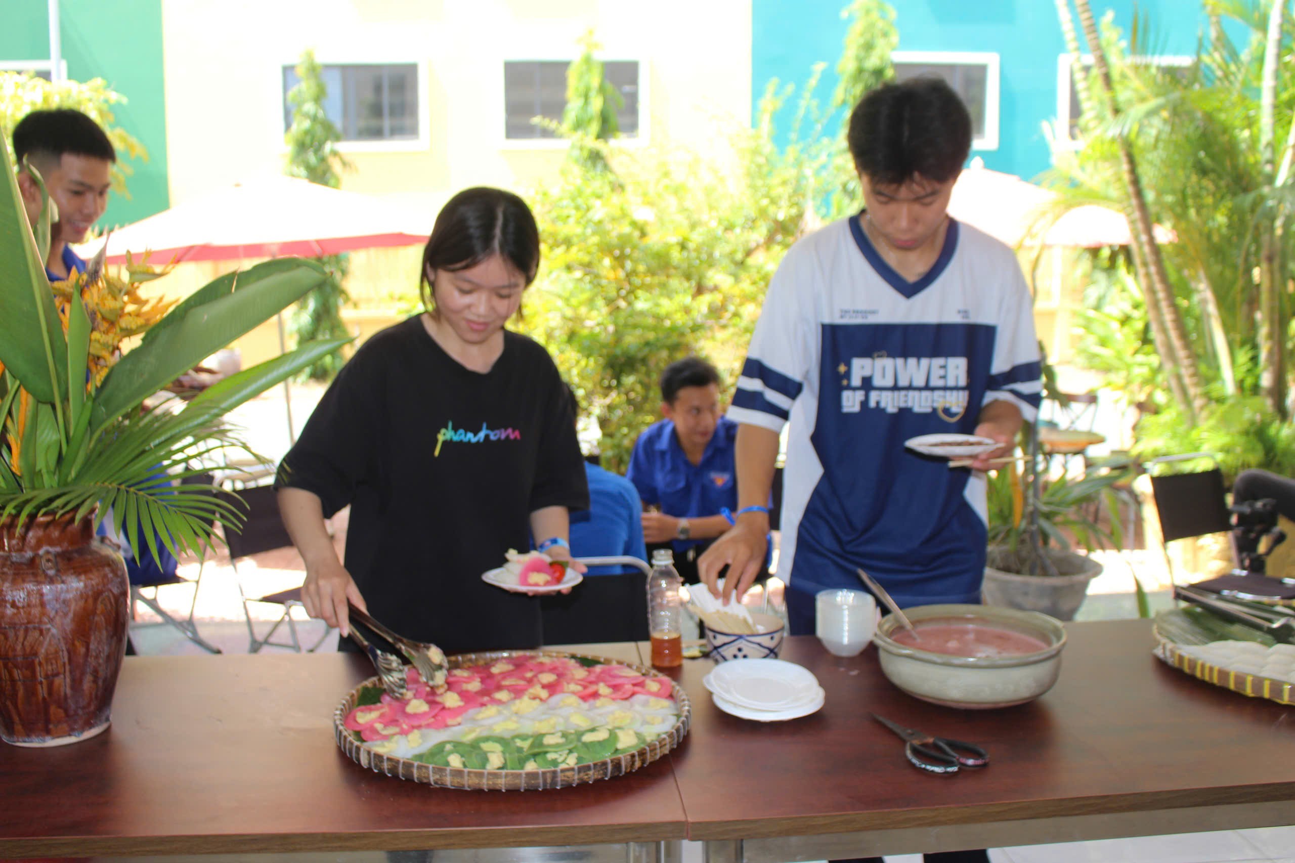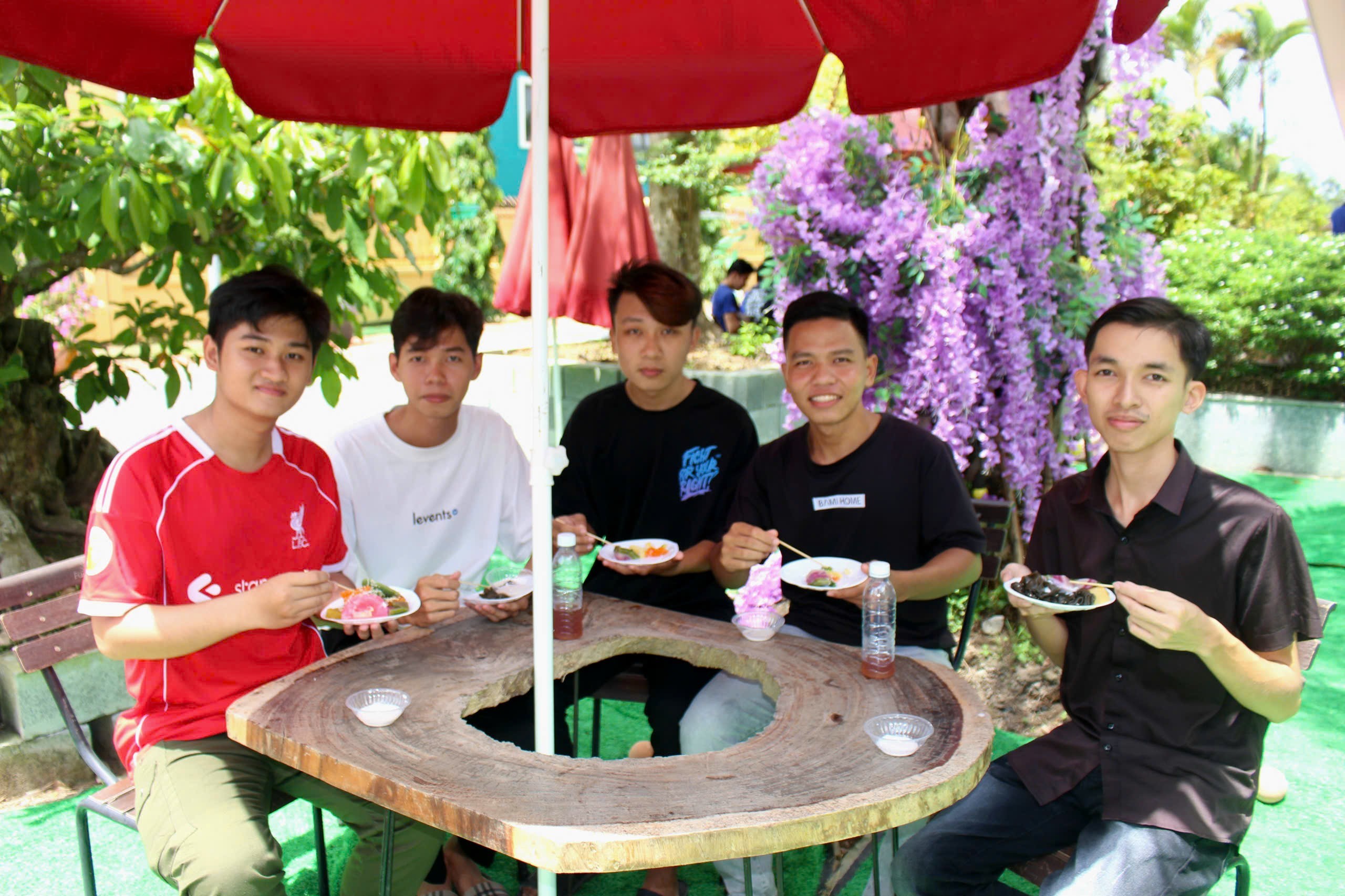 hội trở nên náo nhiệt hơn khi các bạn sinh viên vừa thưởng thức vừa chia sẻ cảm