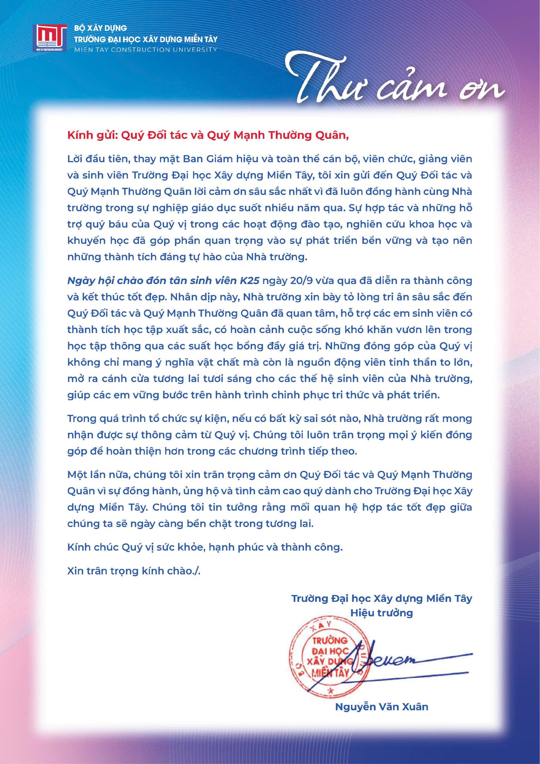 TRƯỜNG ĐẠI HỌC XÂY DỰNG MIỀN TÂY TRI ÂN SỰ ĐỒNG HÀNH CỦA QUÝ NHÀ TÀI TRỢ