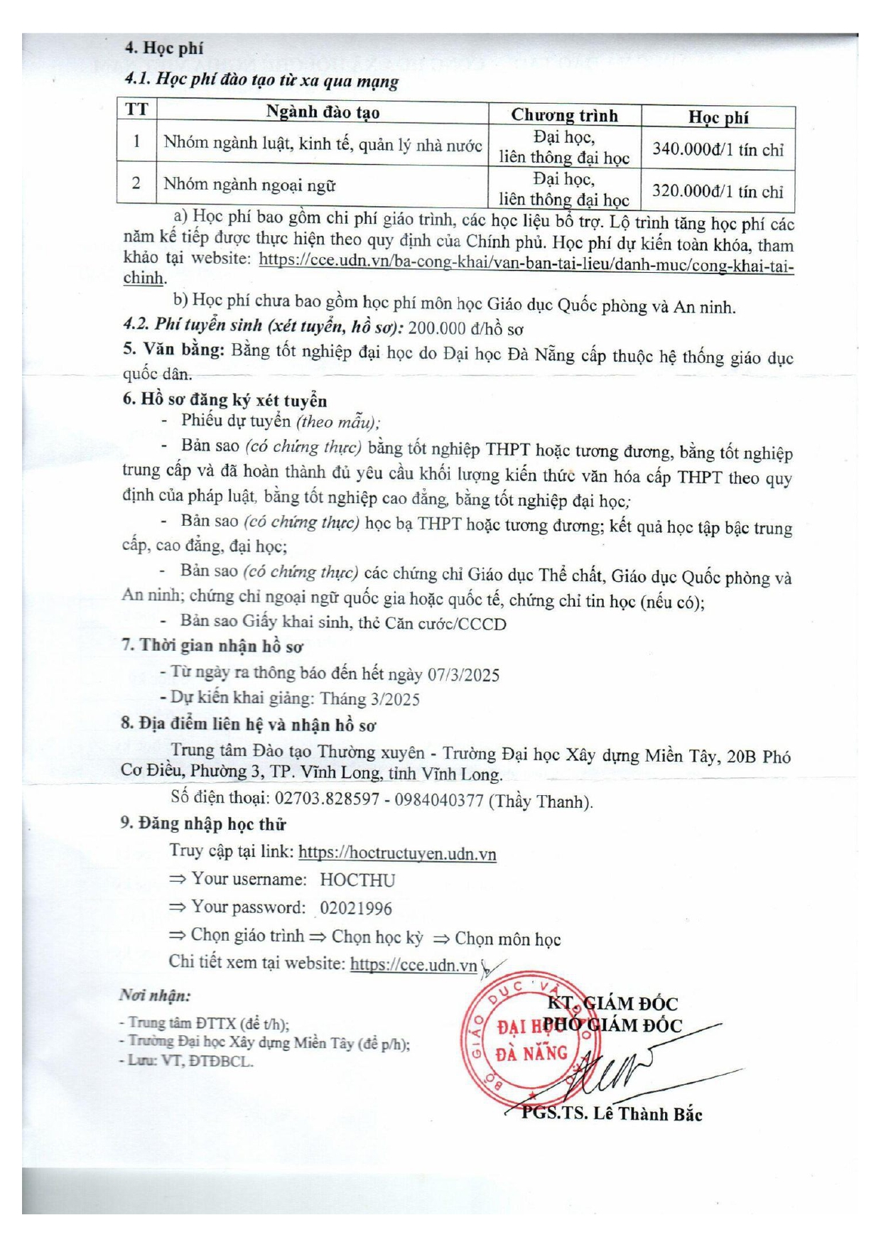 Đại học Đà Nẵng Thông báo tuyển sinh đại học hình thức đào tạo từ xa khóa 32.2/2025 tại tỉnh Vĩnh Long