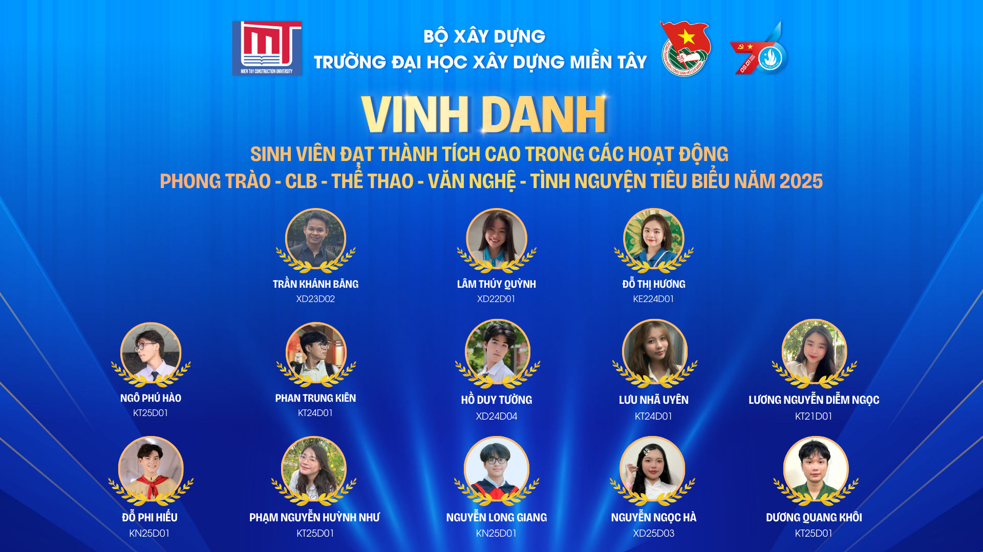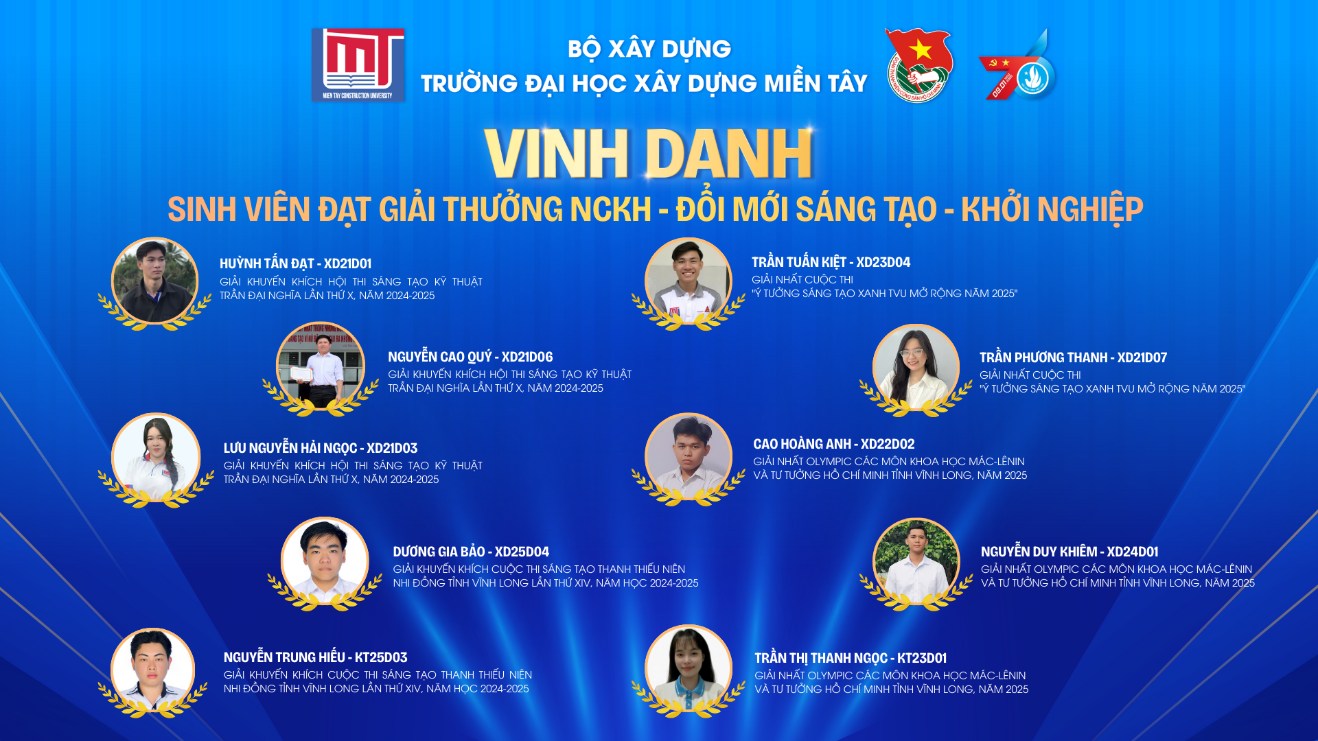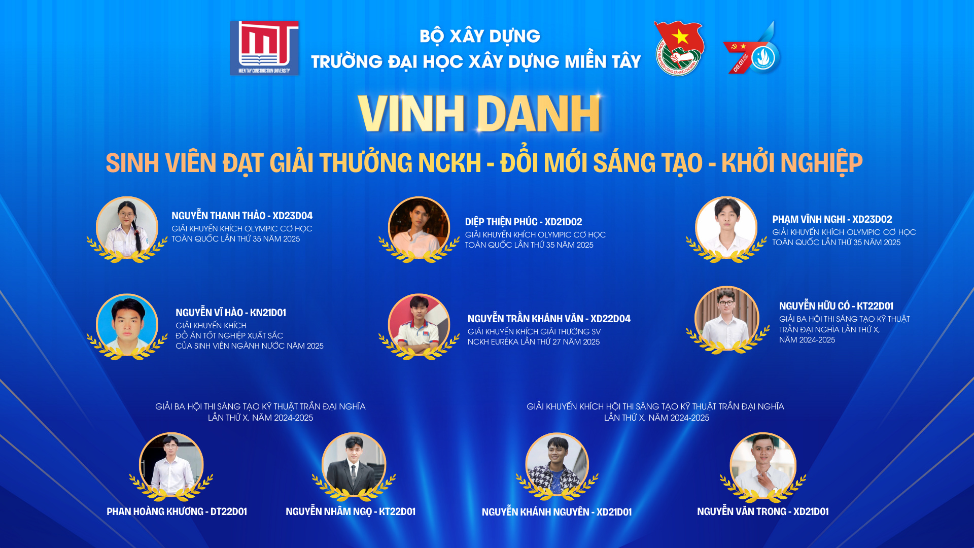 Năm 2025 ghi dấu nhiều thành tựu rực rỡ của sinh viên Trường Đại học Xây dựng Miền Tây trên các lĩnh vực: Học thuật, Nghiên cứu khoa học,