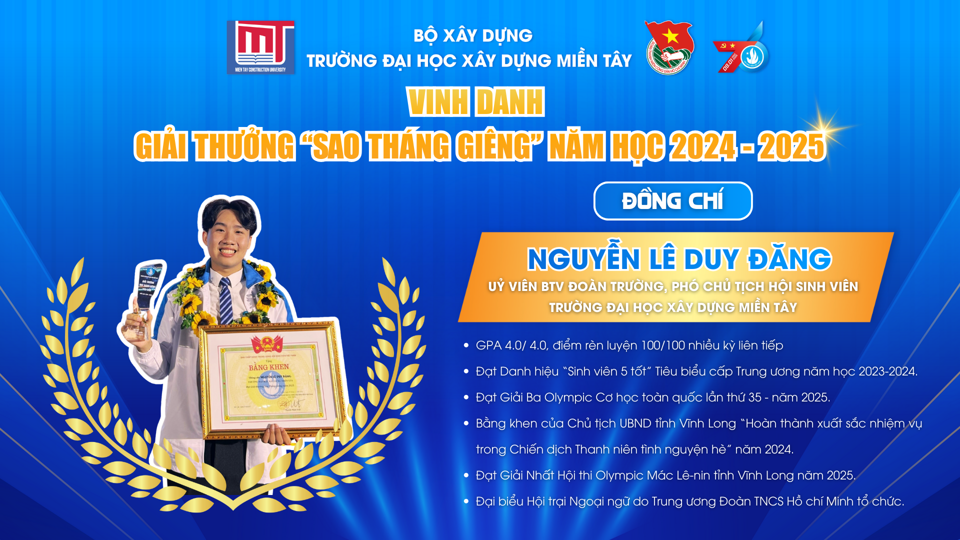 VINH DANH ĐỒNG CHÍ NGUYỄN LÊ DUY ĐĂNG – TẤM GƯƠNG “SAO THÁNG GIÊNG” TIÊU BIỂU CẤP TRUNG ƯƠNG NĂM HỌC 2024 – 2025
