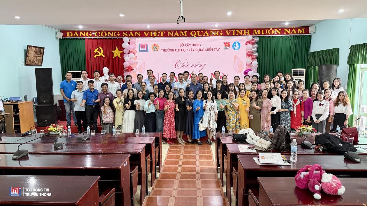 [20/10/2025] Sáng ngày 20/10/2025, tại Hội trường H3.1 - Trường Đại học Xây dựng Miền Tây, Công đoàn Trường đã long trọng tổ chức buổi họp mặt kỷ niệm 95 năm Ngày Phụ nữ Việt Nam (20/10/1930 - 20/10/2025), nhằm tôn vinh và tri ân những đóng góp to lớn của đội ngũ nữ cán bộ, giảng viên và người lao động đang công tác tại Trường.