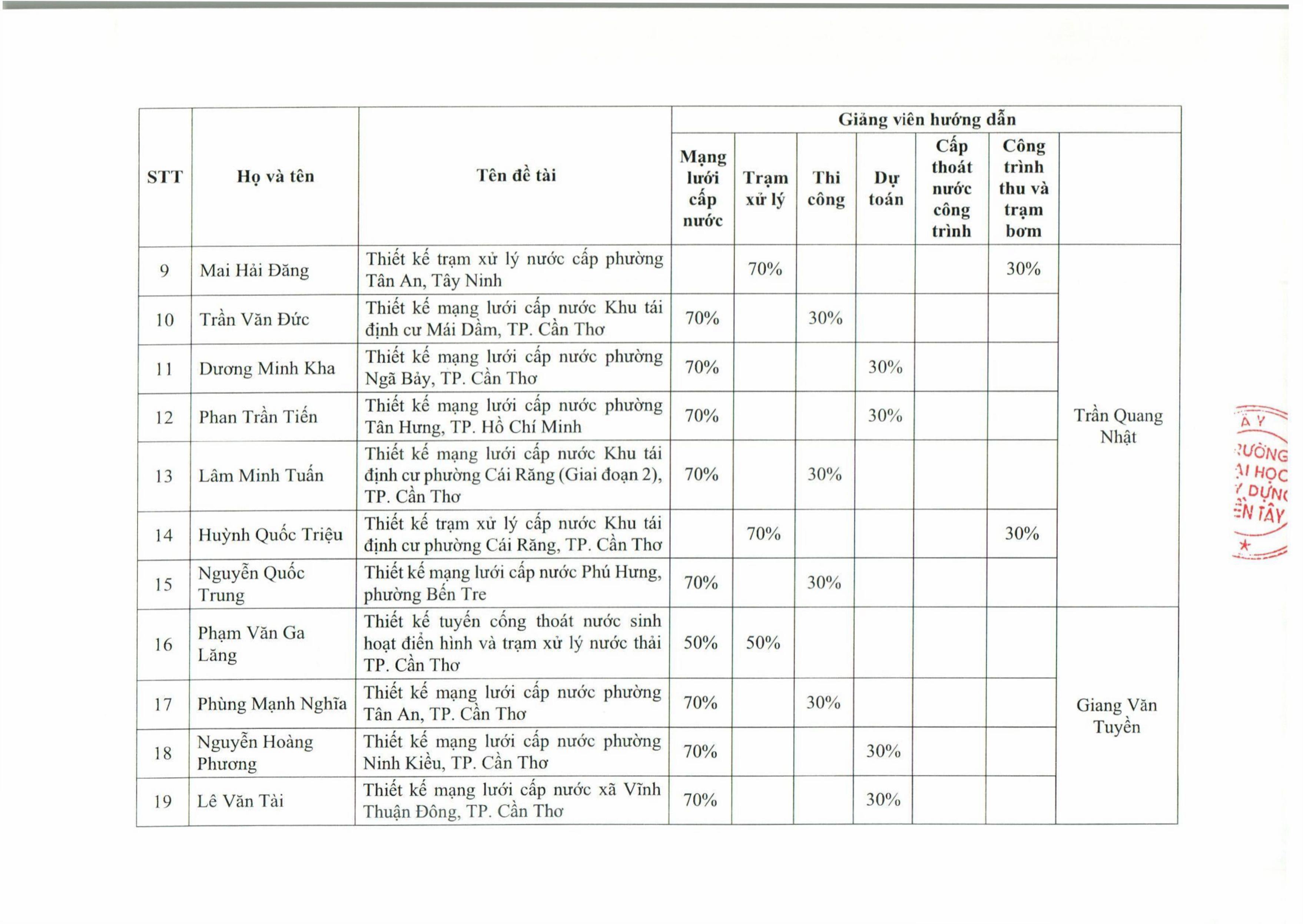 QUYẾT ĐỊNH Giao đồ án tốt nghiệp và phân công giảng viên hướng dẫn (Lớp KN21D01-AG, Ngành Kỹ thuật Cấp thoát nước)