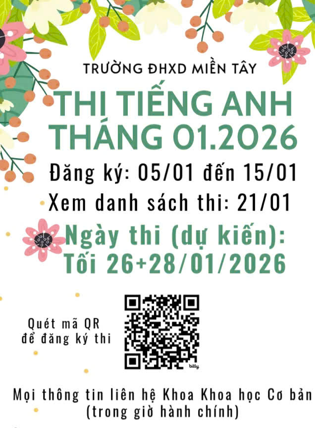 TỔ CHỨC THI TIẾNG ANH ĐỢT THÁNG 1.2026