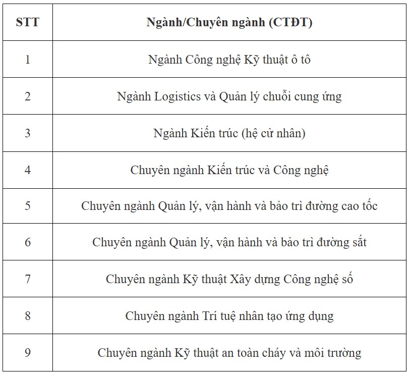 mục các ngành/chuyên ngành (dự kiến) mở