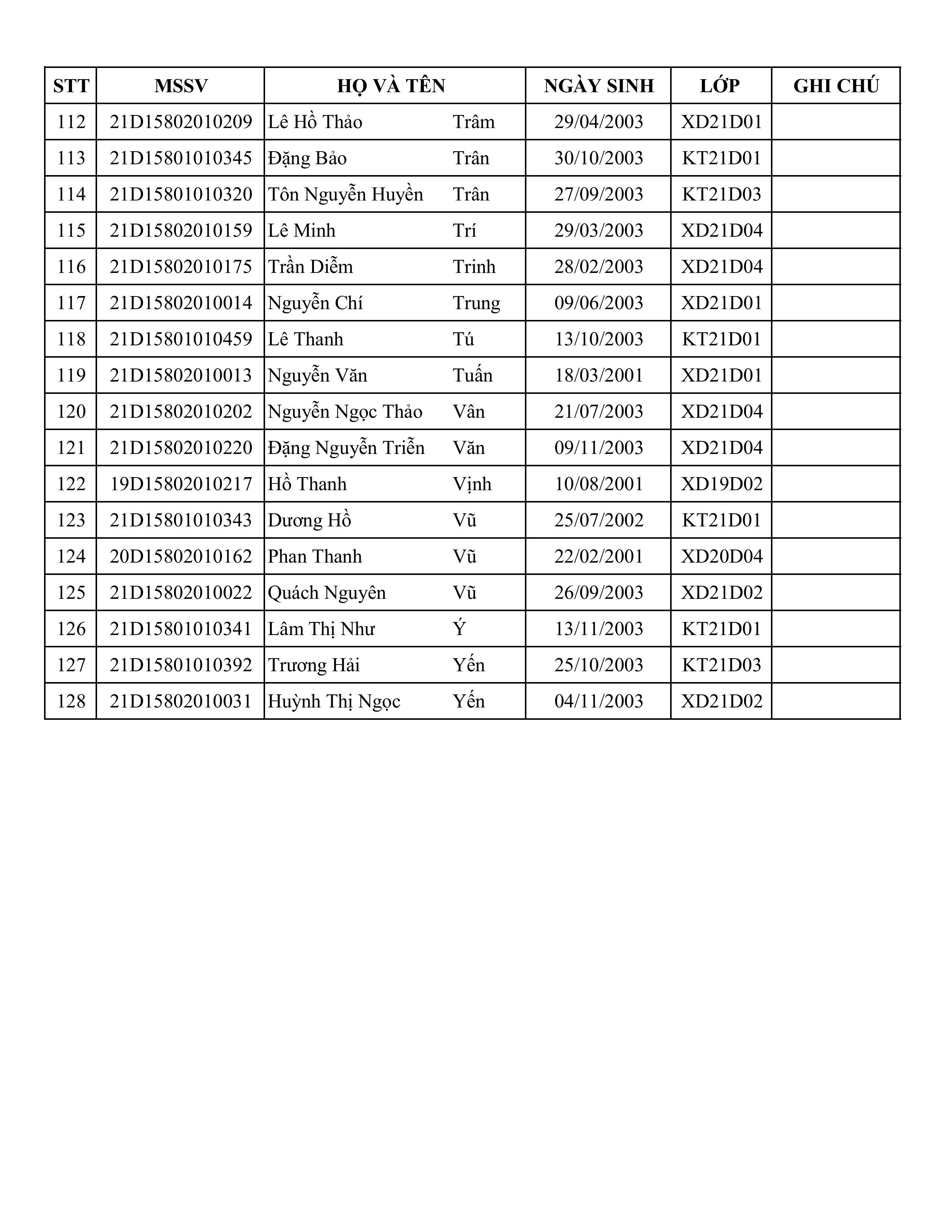Công nhận danh sách sinh viên đủ điều kiện giao đồ án tốt nghiệp (Lớp GT22D01-VL, Ngành Kỹ thuật Xây dựng Công trình Giao thông)