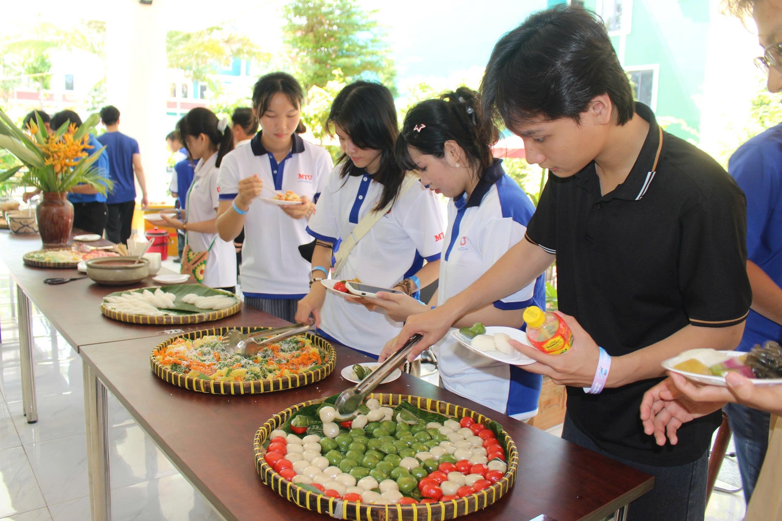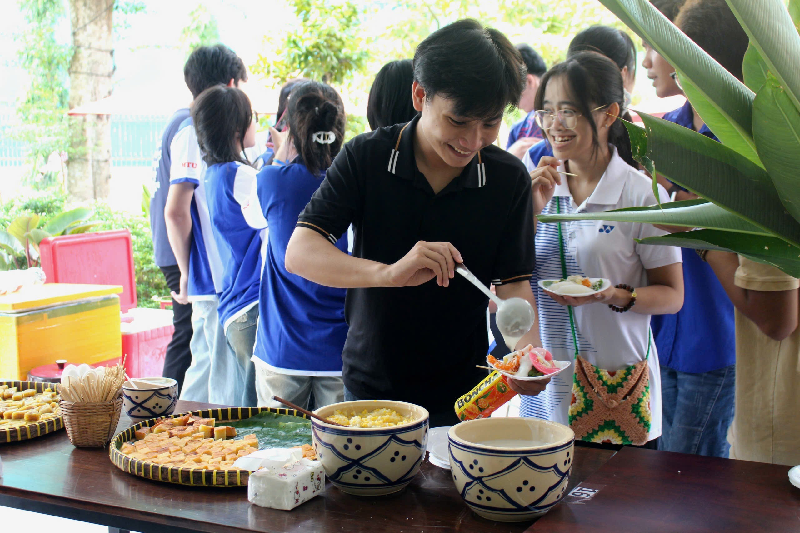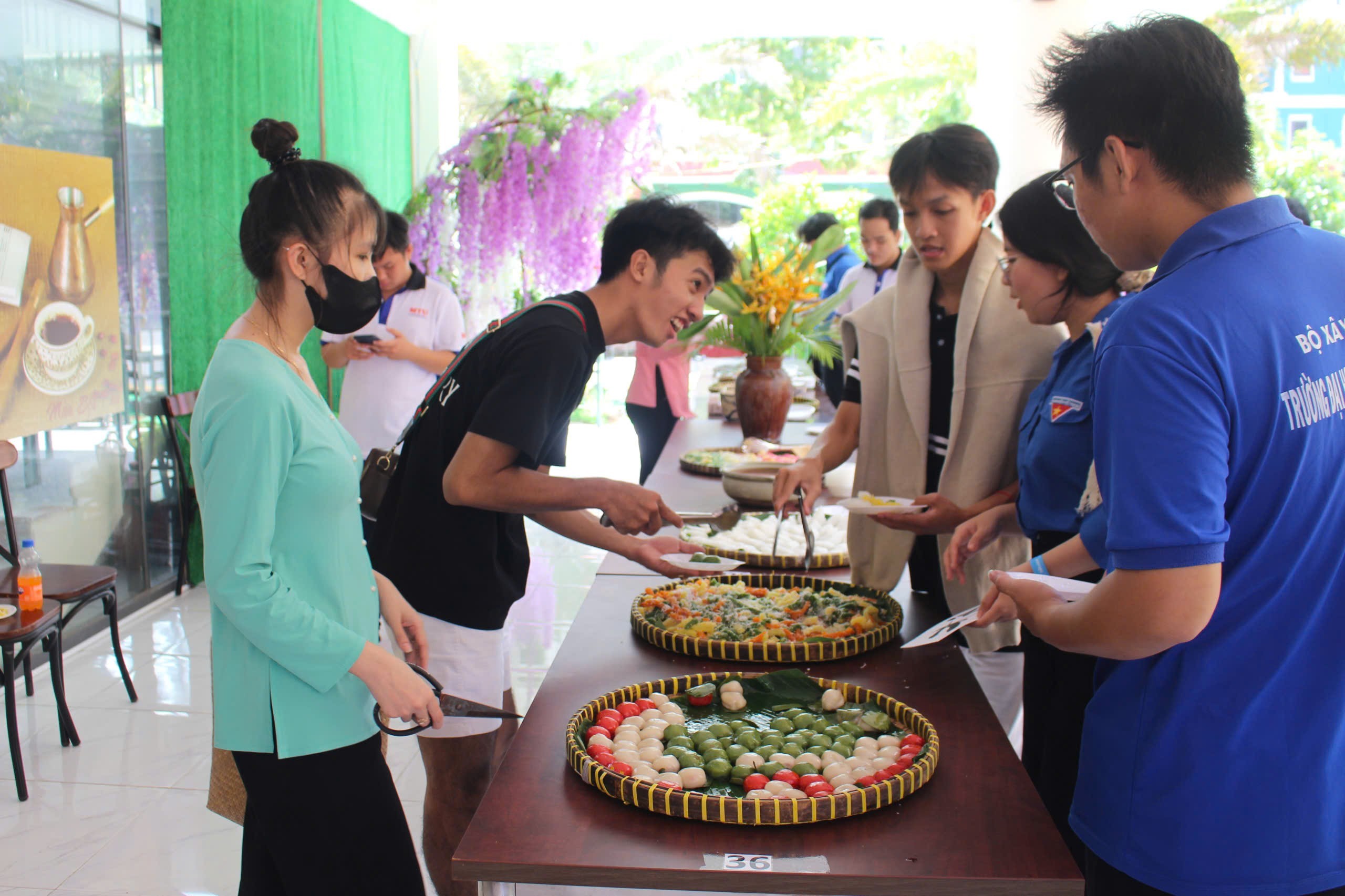 hội trở nên náo nhiệt hơn khi các bạn sinh viên vừa thưởng thức vừa chia sẻ cảm