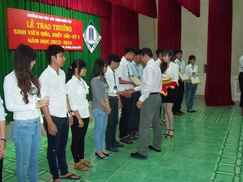 Ngày 10/04/2014 Trường ĐHXD Miền Tây đã long trọng tổ chức phát thưởng, khen thưởng cho HSSV đạt thành tích cao trong học kỳ I năm học 2013-2014.