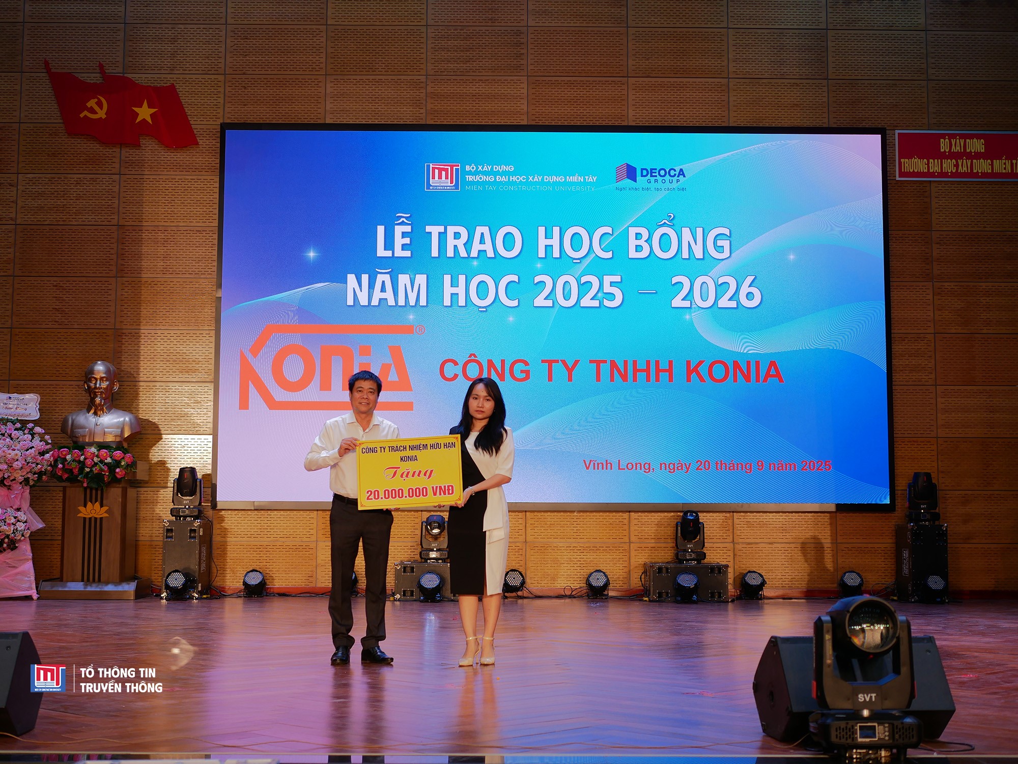 Đại diện Công ty TNHH KONIA trao tặng học bổng
