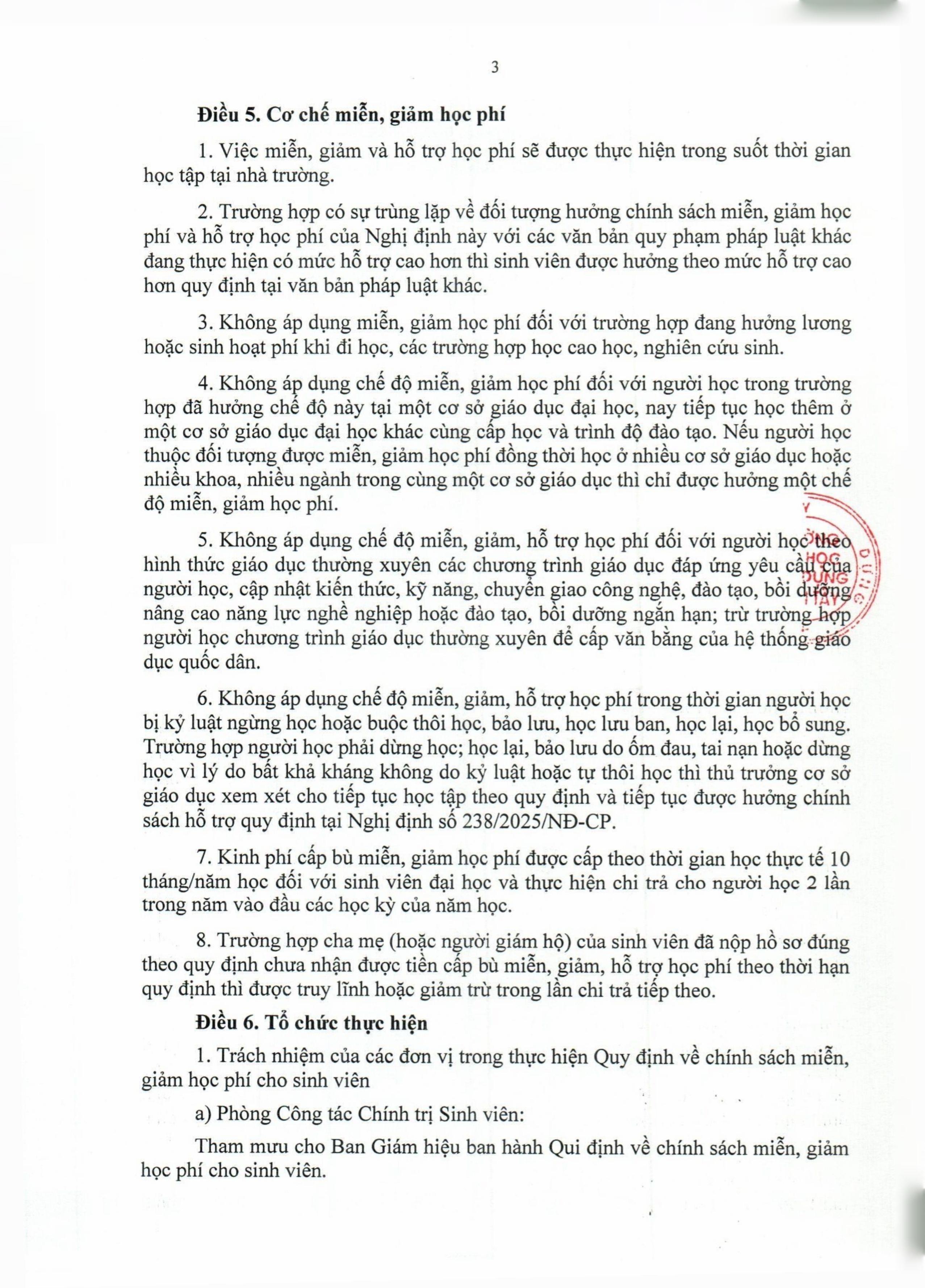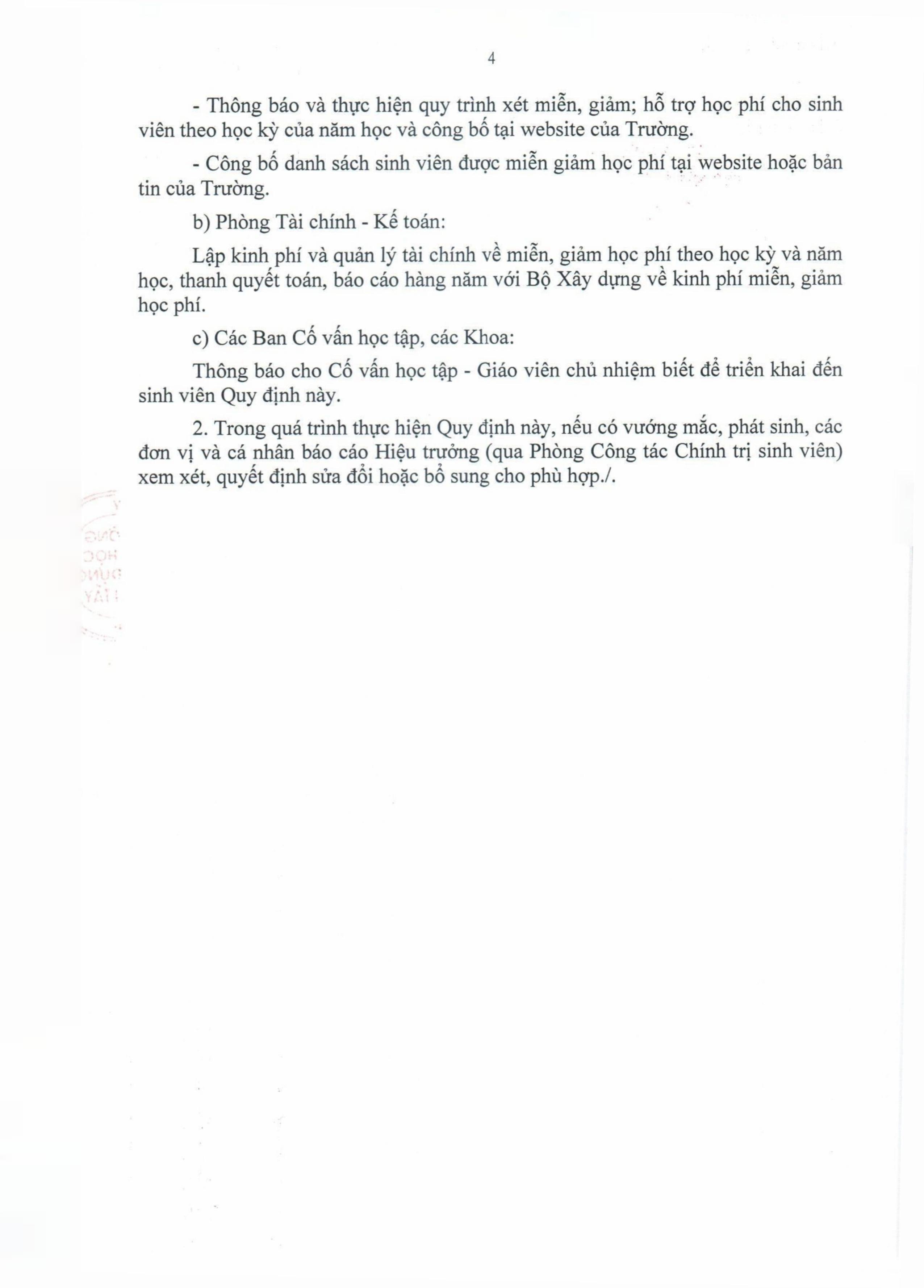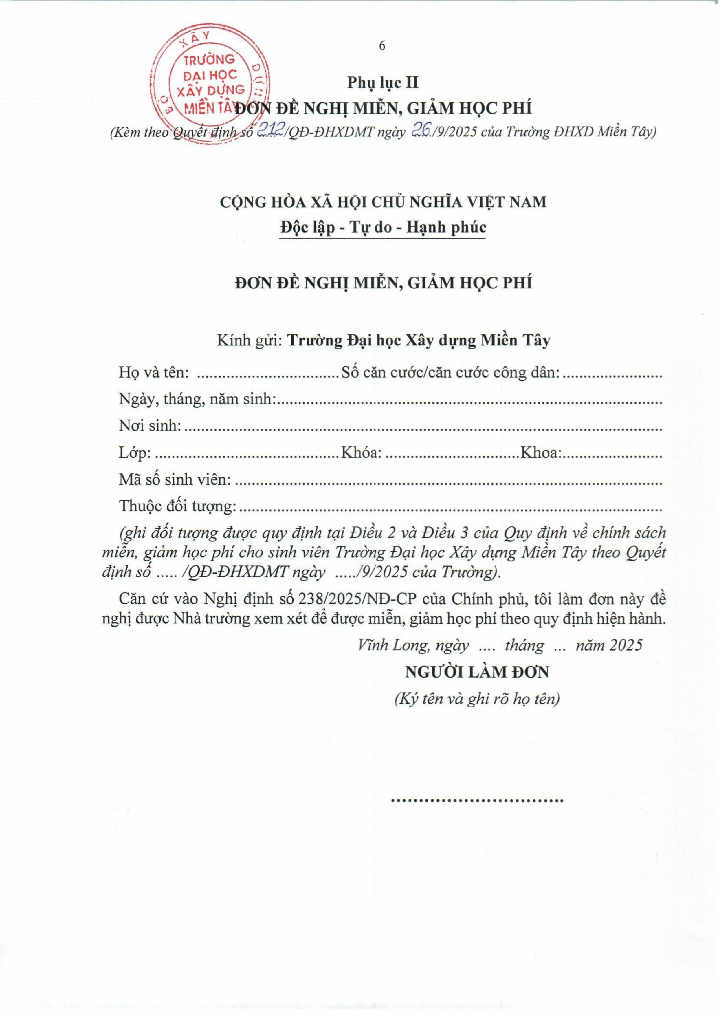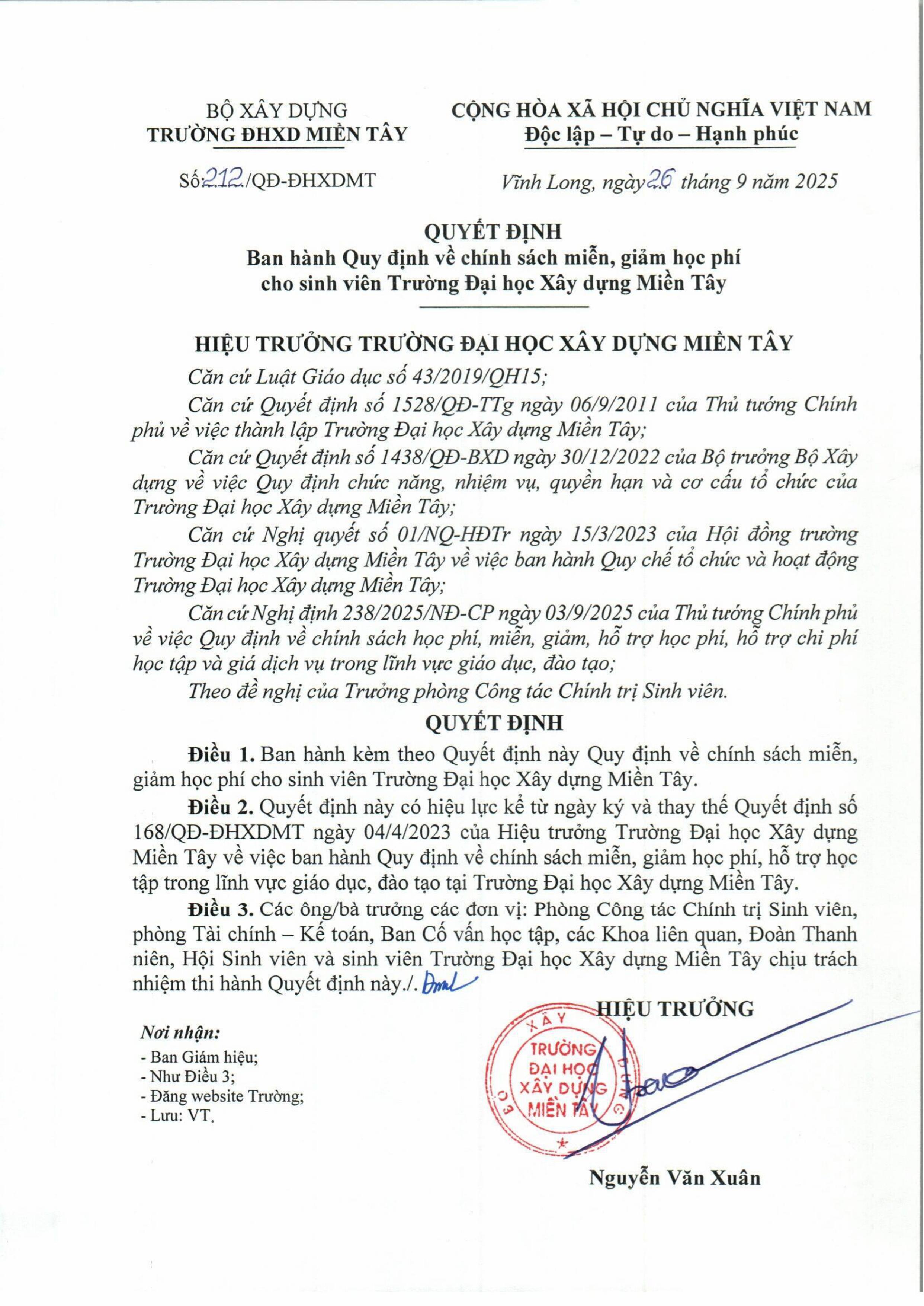 Quyết định Ban hành Quy định Chính sách miễn, giảm học phí cho sinh viên ĐHXD Miền Tây