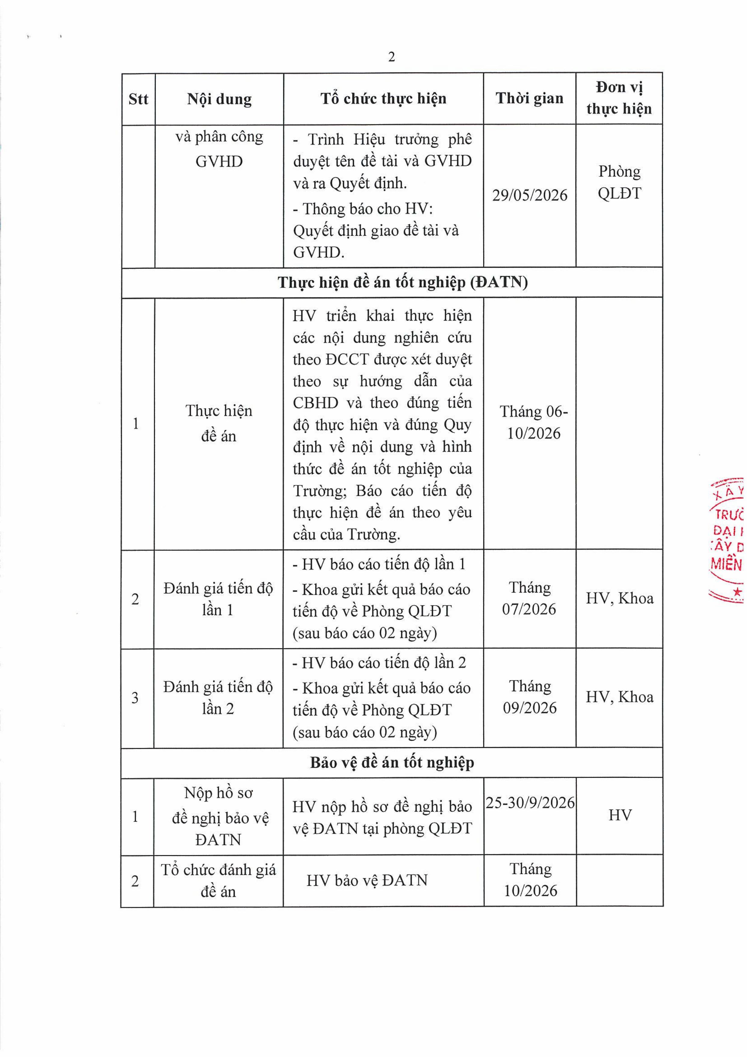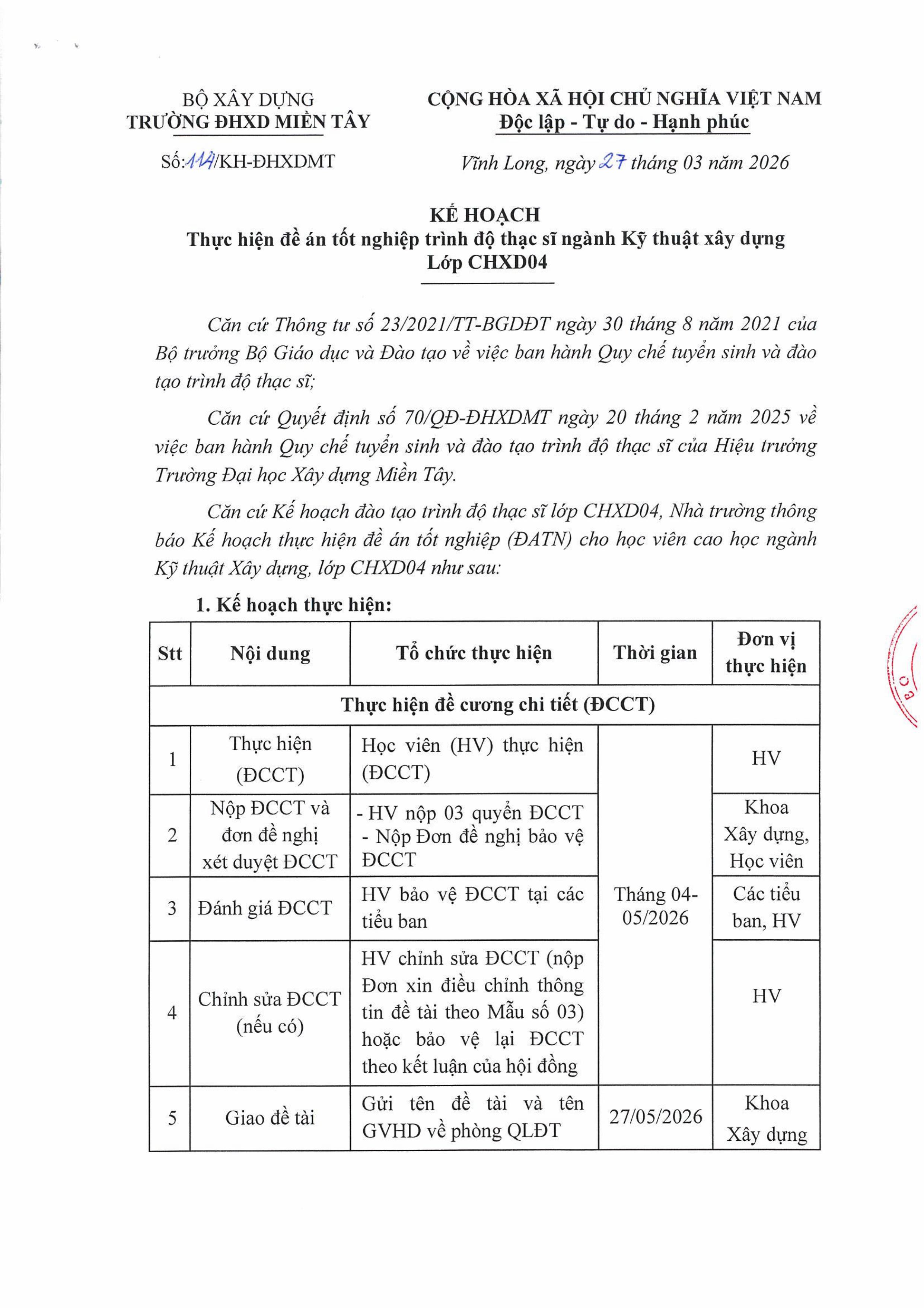 Thực hiện đề án tốt nghiệp trình độ thạc sĩ ngành Kỹ thuật xây dựng Lớp CHXD04