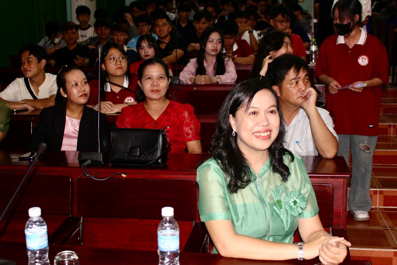 Sinh viên Trường Đại học Xây dựng Miền Tây hào hứng đặt câu hỏi giao lưu