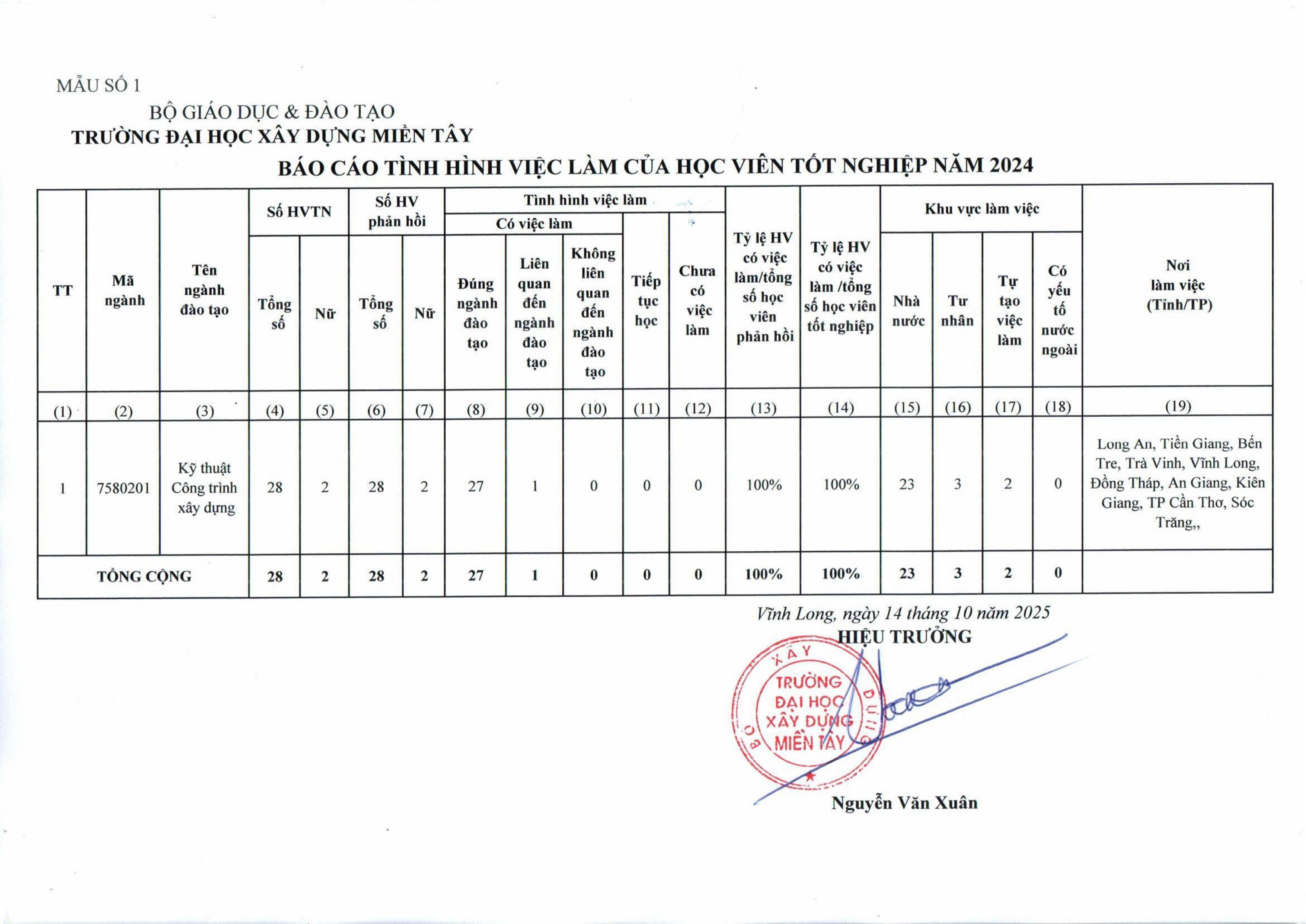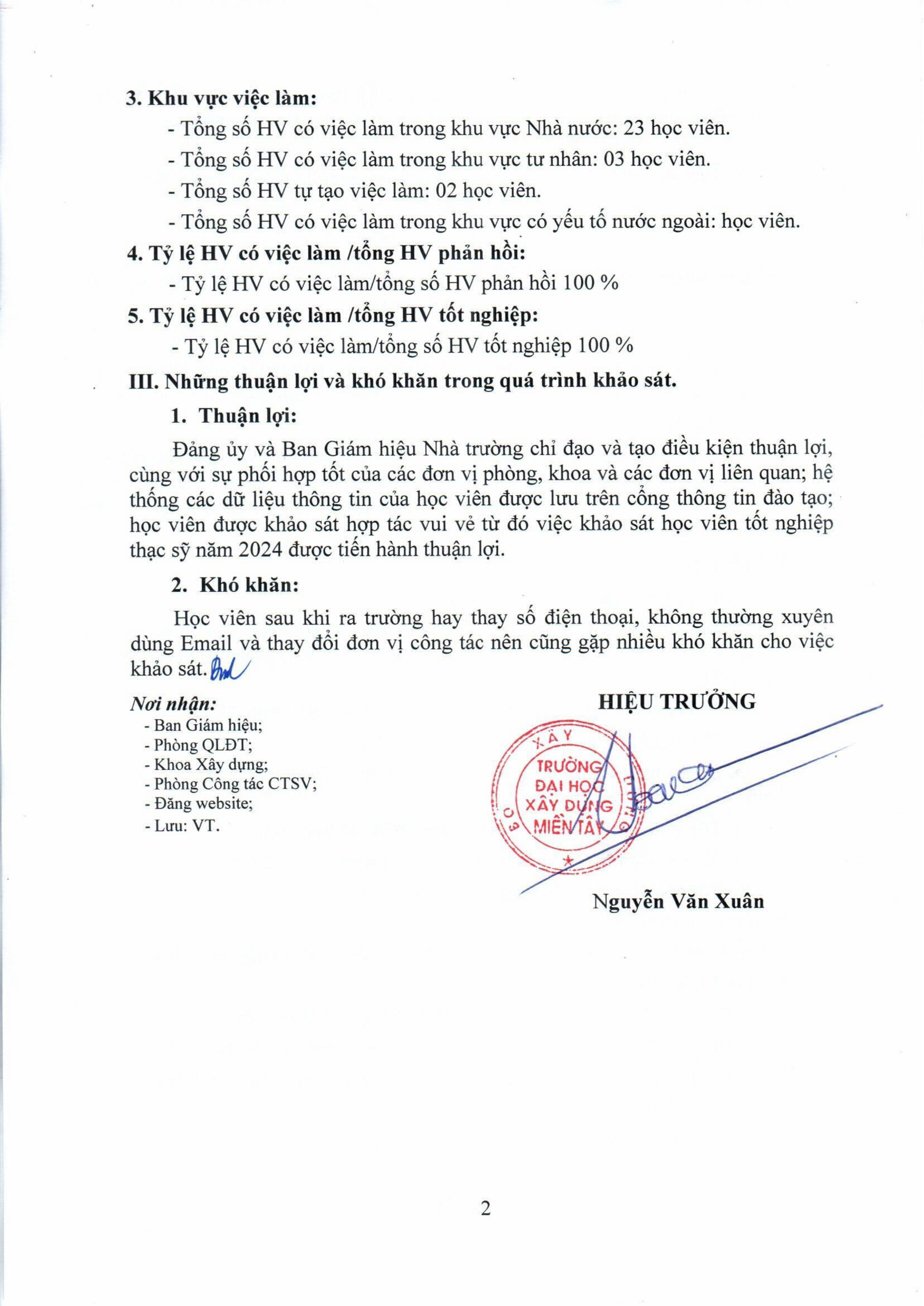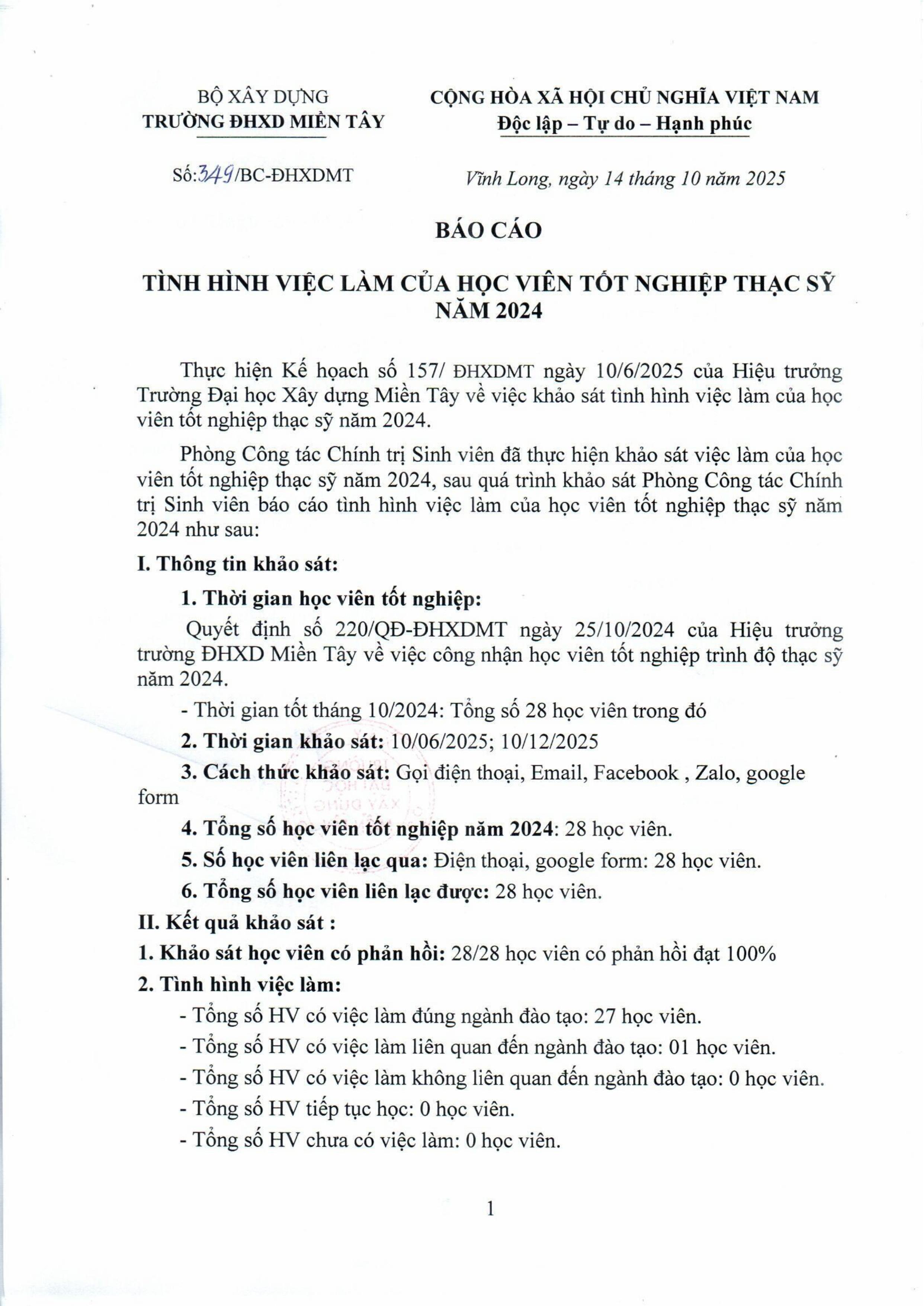 Báo cáo tình hình việc làm của học viên tốt nghiệp thạc sĩ năm 2024