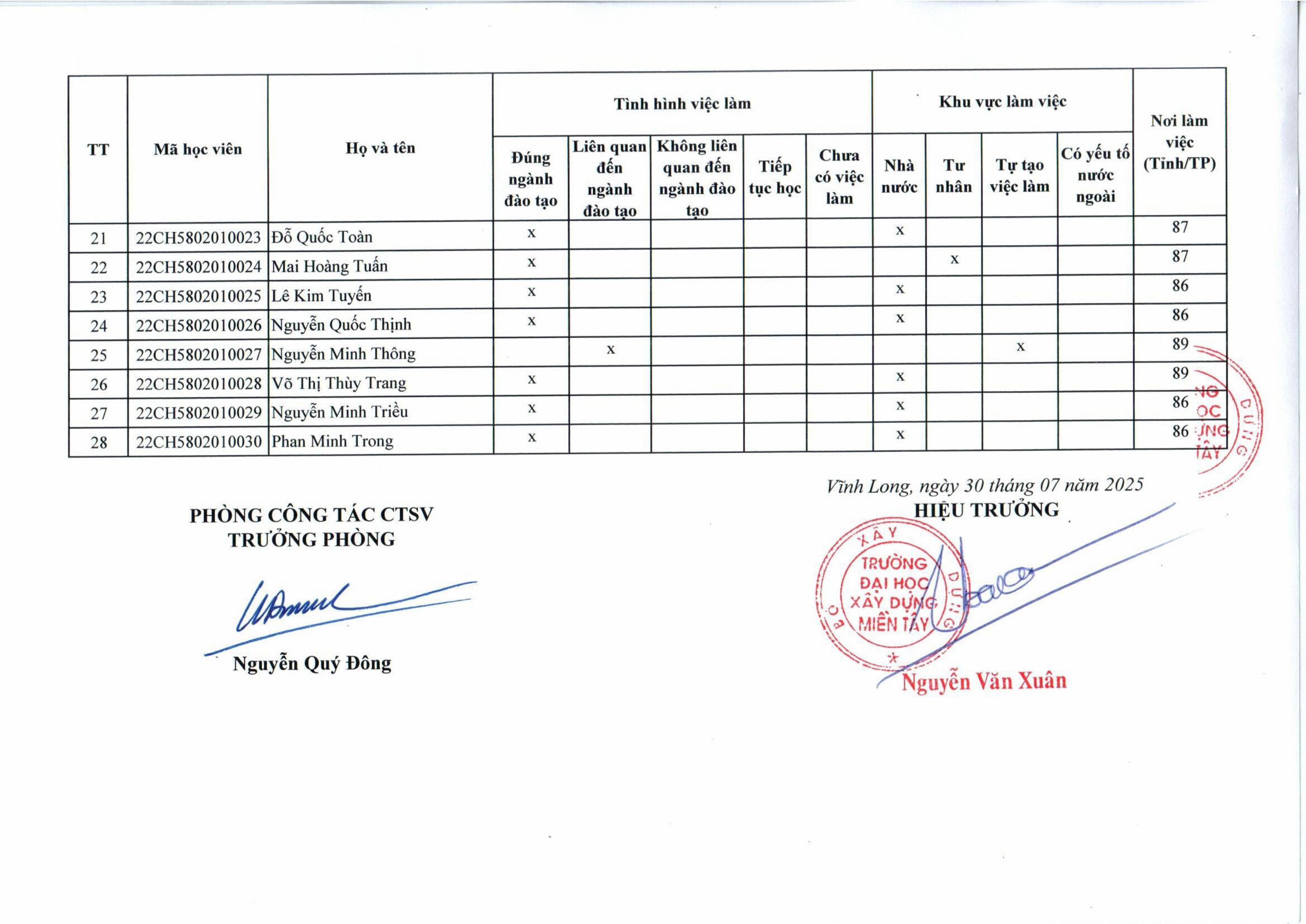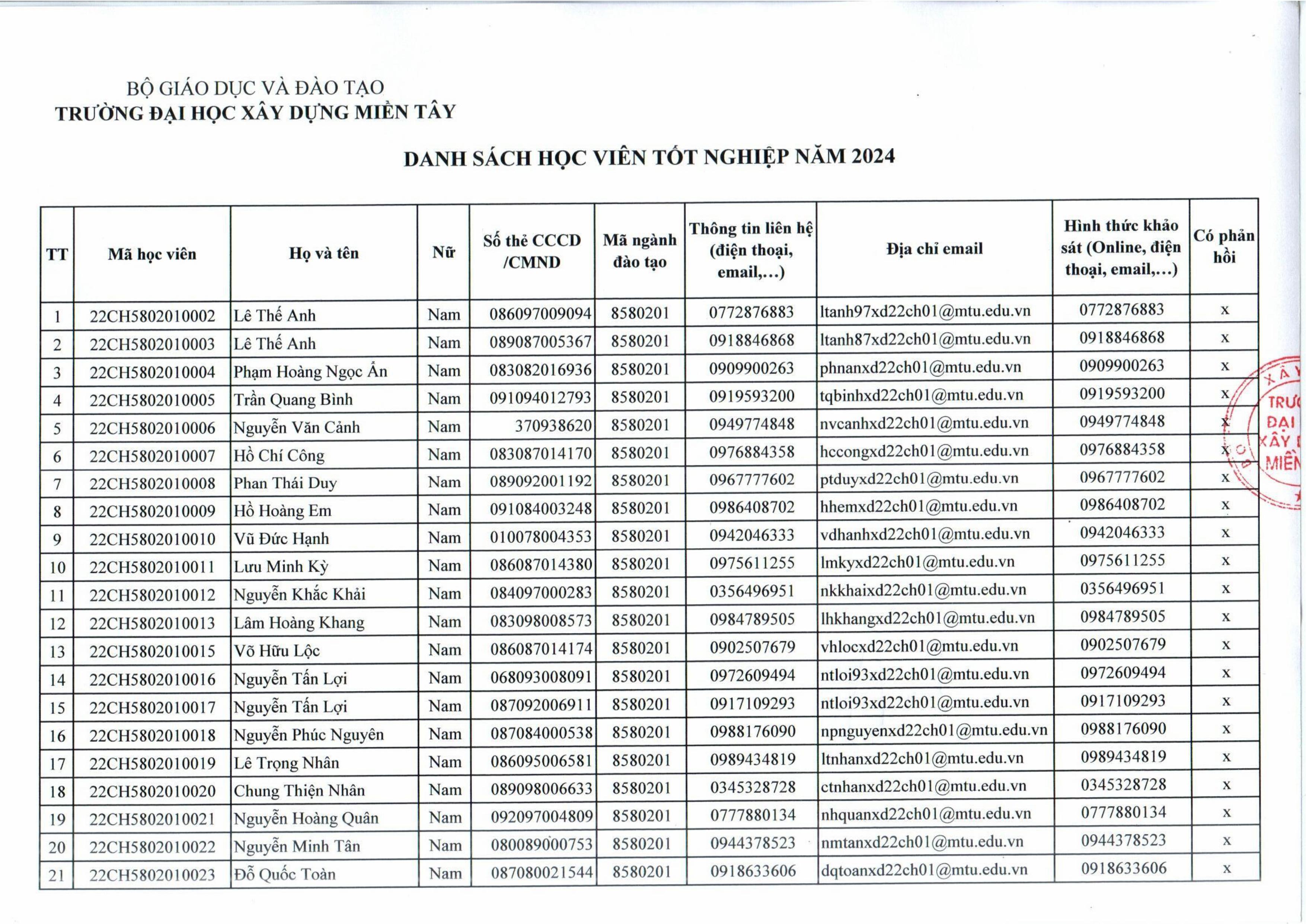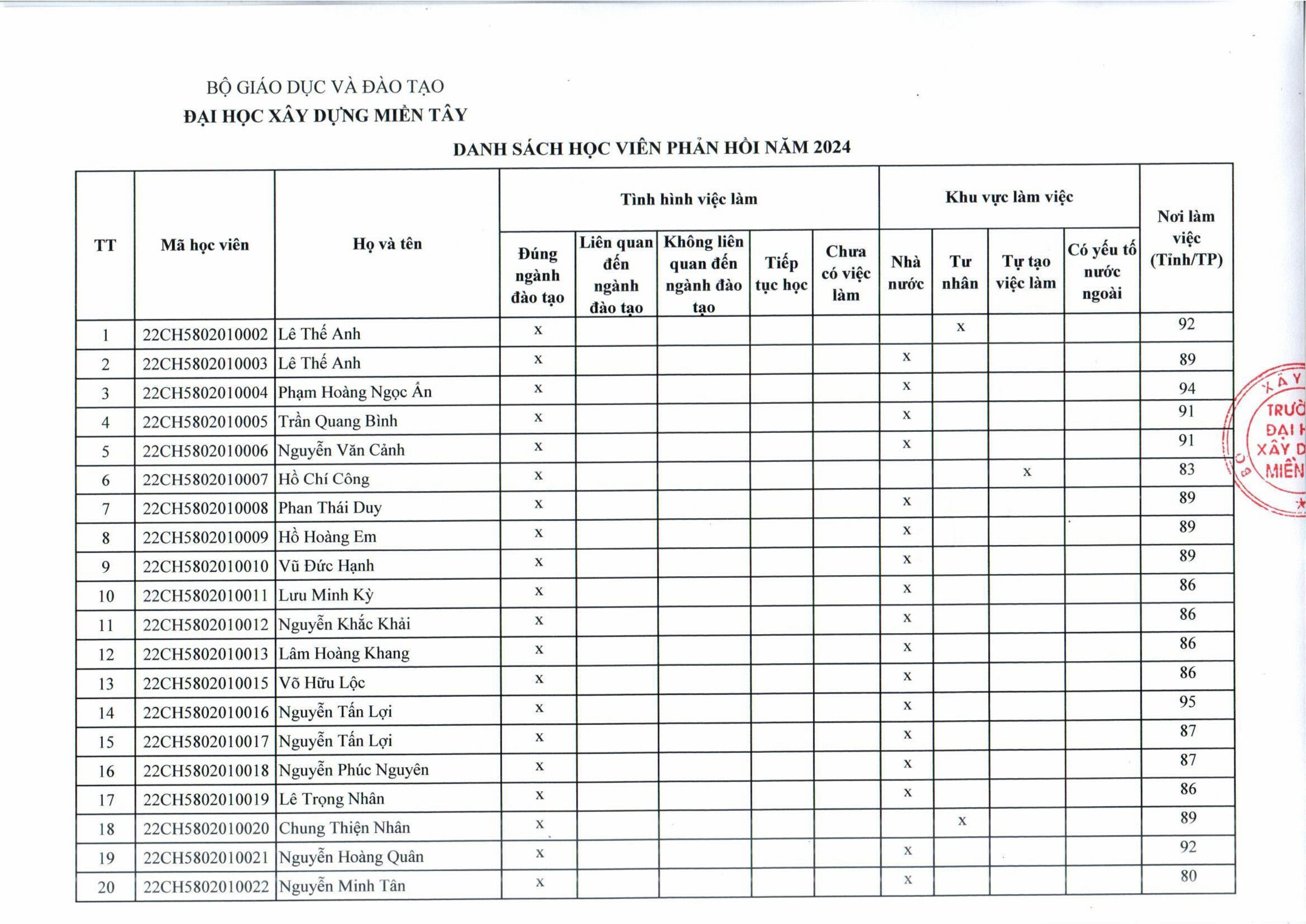 Báo cáo tình hình việc làm của học viên tốt nghiệp thạc sĩ năm 2024