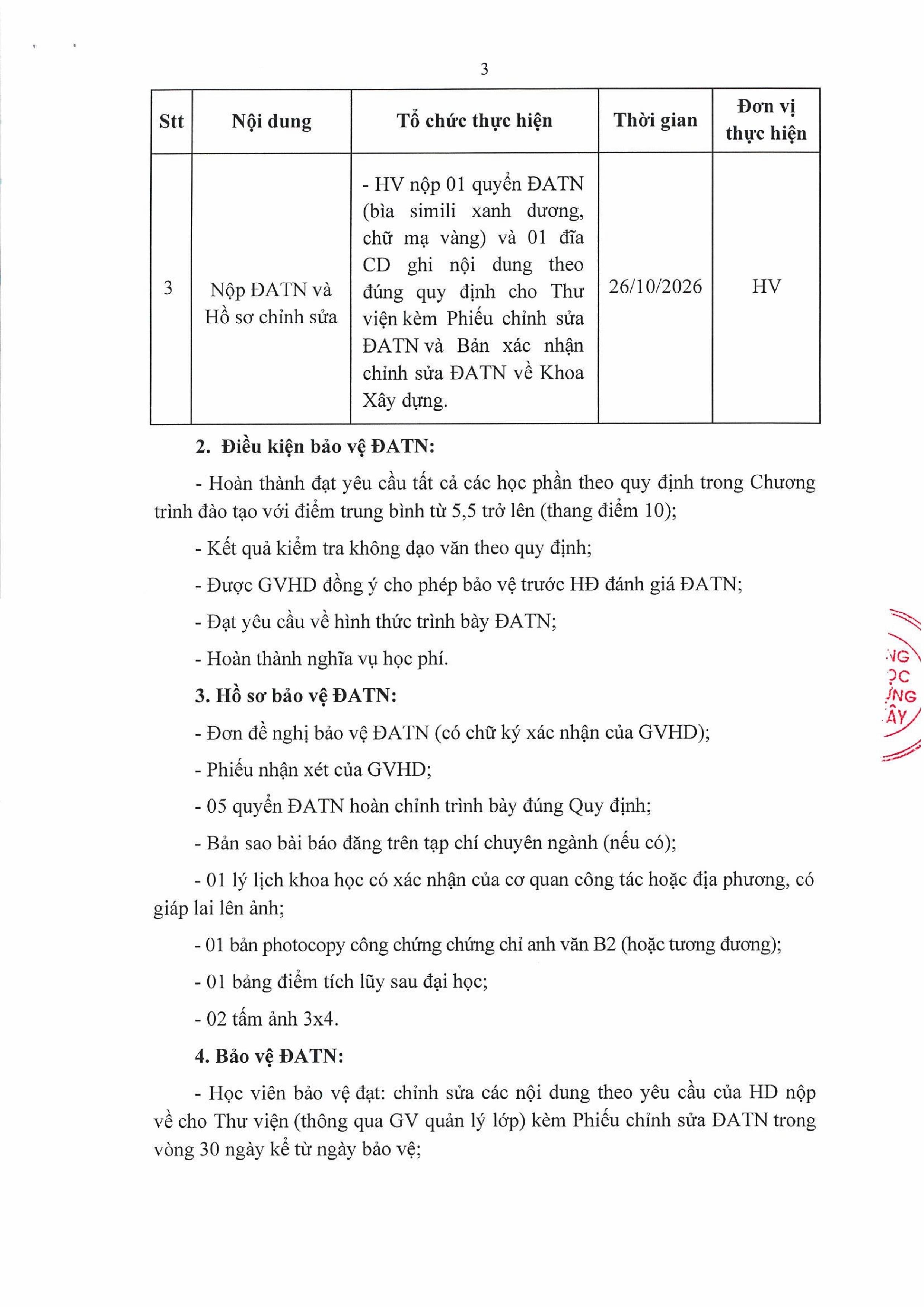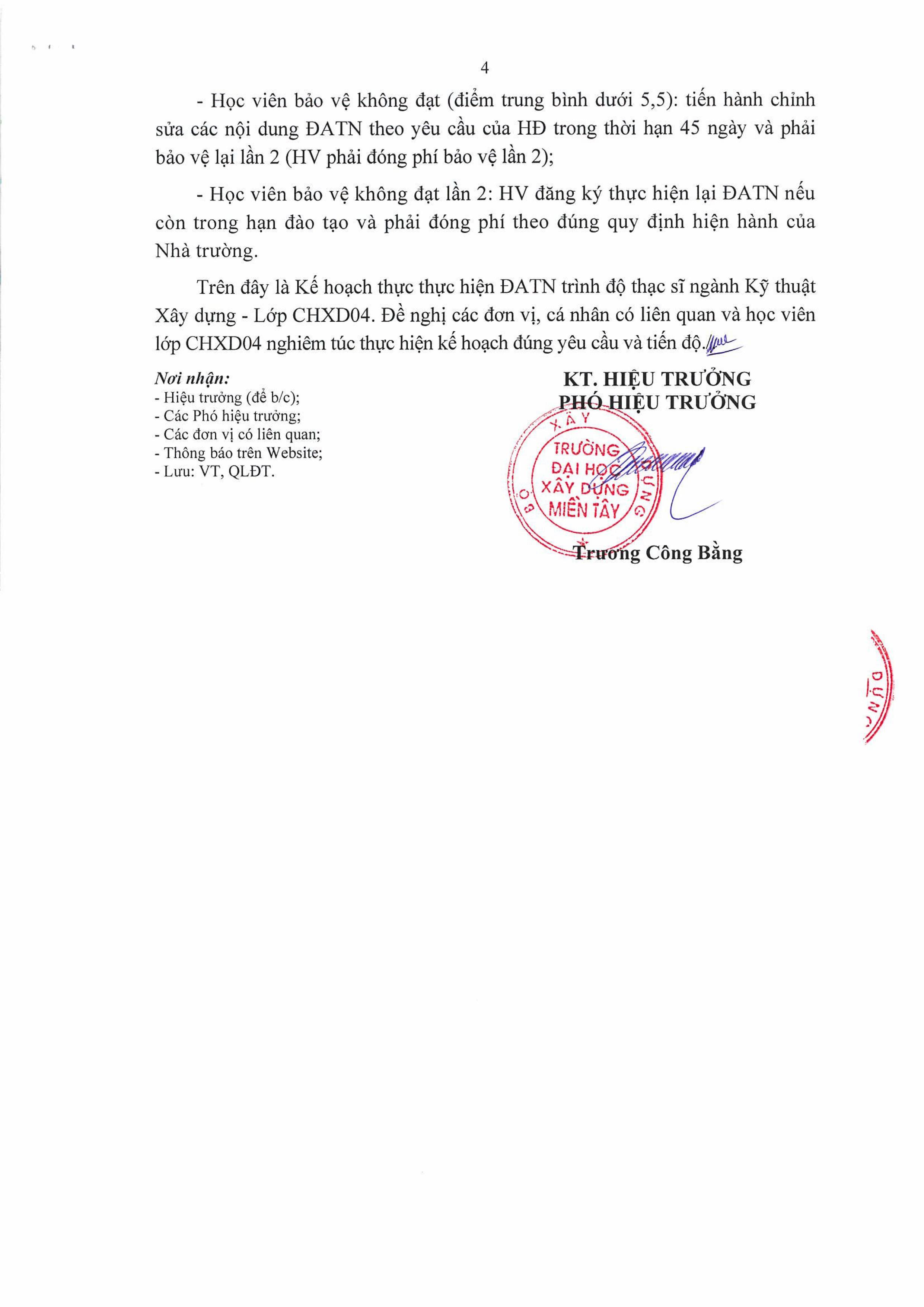 Thực hiện đề án tốt nghiệp trình độ thạc sĩ ngành Kỹ thuật xây dựng Lớp CHXD04
