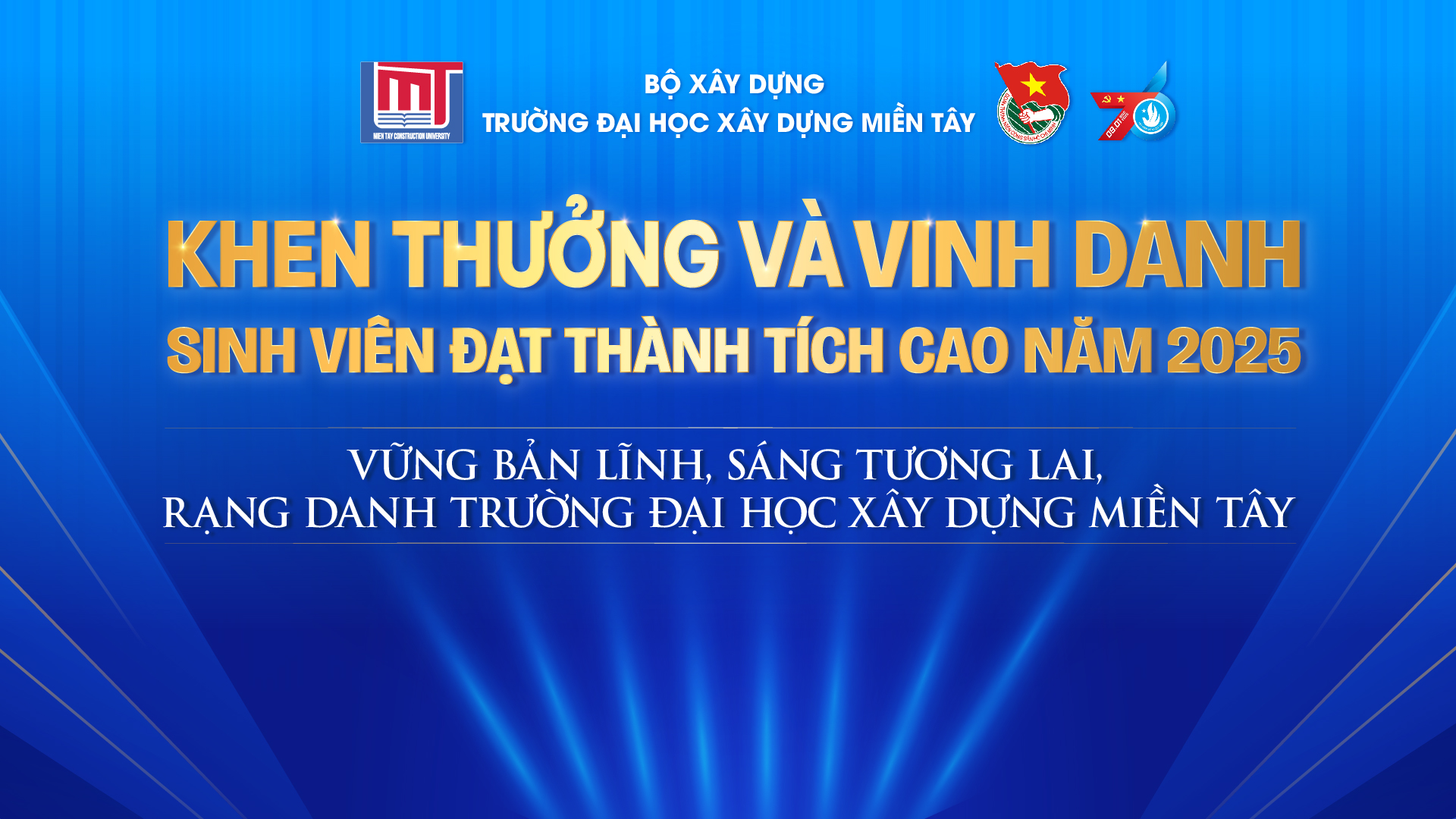 [09/01/2026] Hòa trong không khí phấn khởi chào mừng kỷ niệm Ngày Truyền thống Học sinh - Sinh viên và Hội Sinh viên Việt Nam (9/1/1950 - 9/1/2026), tối ngày 08/01/2026, Trường Đại học Xây dựng Miền Tây đã long trọng tổ chức Lễ Vinh danh sinh viên đạt thành tích cao năm 2025 với chủ đề “Vững bản lĩnh, sáng tương lai, rạng danh Trường Đại học Xây dựng Miền Tây”.