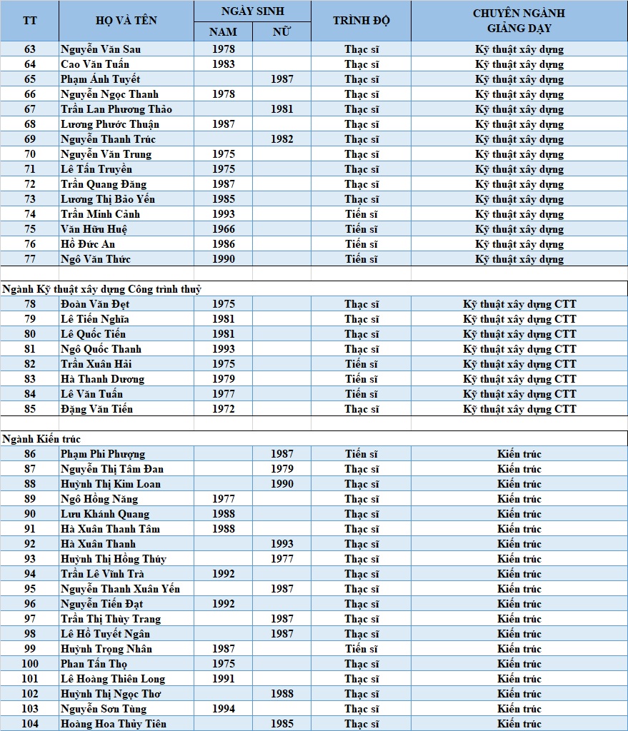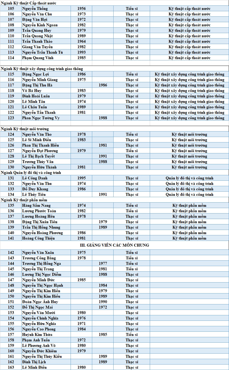 Đội ngũ Giảng viên Trường ĐHXD Miền Tây