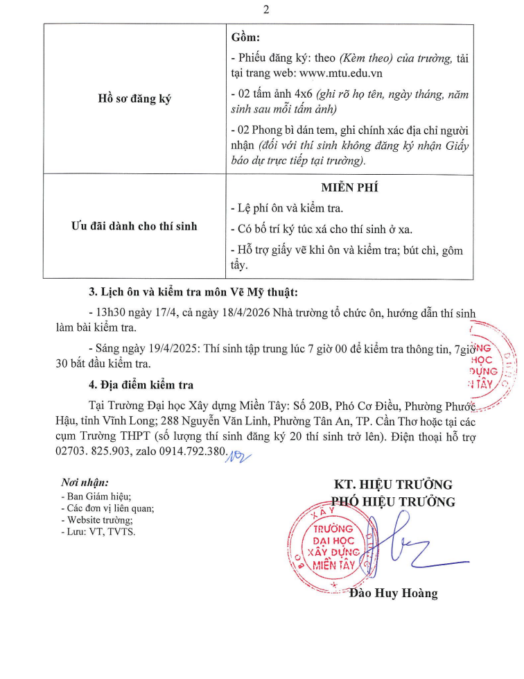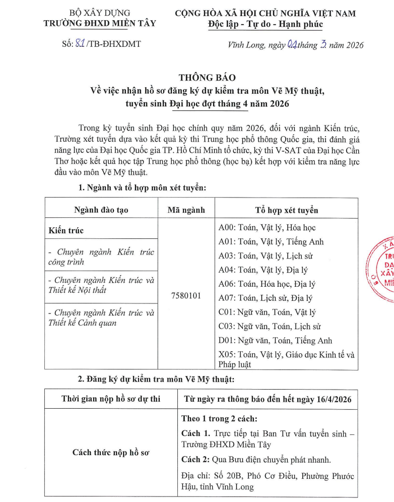 THÔNG TIN TUYỂN SINH NĂM 2026 CỦA TRƯỜNG ĐẠI HỌC XÂY DỰNG MIỀN TÂY