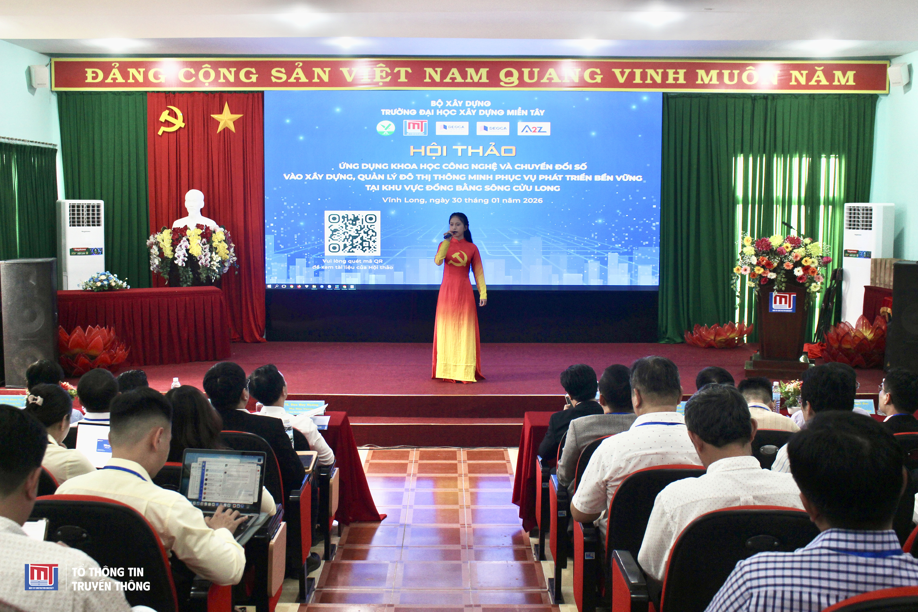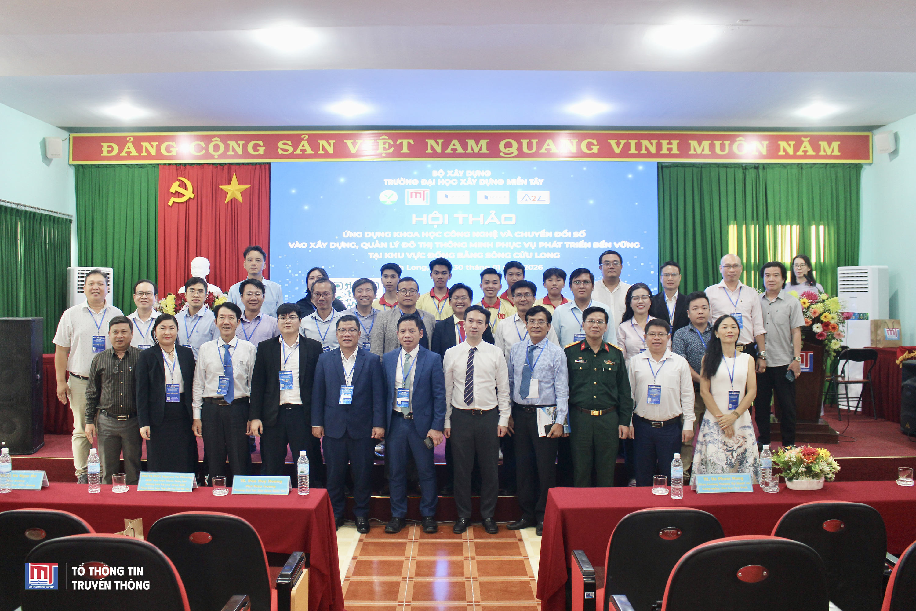 Ngày 30/01/2026, tại Trường Đại học Xây dựng Miền Tây, đã diễn ra Hội thảo khoa học với chủ đề “Ứng dụng khoa học công nghệ và chuyển đổi số vào xây dựng, quản lý đô thị thông minh phục vụ phát triển bền vững tại khu vực Đồng bằng sông Cửu Long”. Hội thảo do Trường Đại học Xây dựng Miền Tây phối hợp với Sở Xây dựng tỉnh Vĩnh Long tổ chức.
