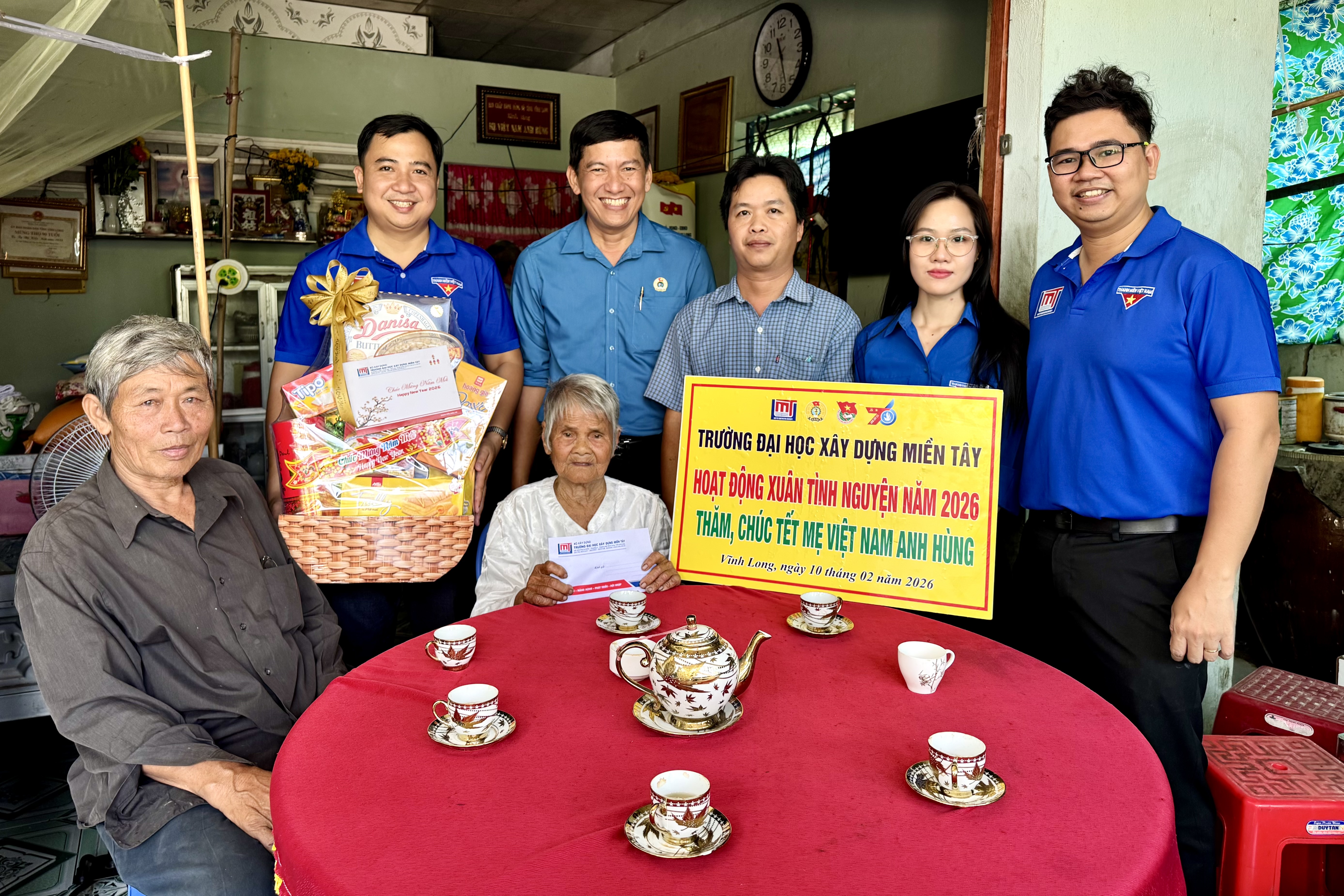 Nhân dịp Tết Nguyên đán năm 2026, Trường Đại học Xây dựng Miền Tây đã tổ chức đoàn đến thăm, chúc Tết và thực hiện công tác phụng dưỡng Mẹ Việt Nam Anh hùng trên địa bàn tỉnh Vĩnh Long. Đây là hoạt động mang ý nghĩa chính trị – xã hội sâu sắc, thể hiện đạo lý “Uống nước nhớ nguồn” và truyền thống tri ân của nhà trường đối với những đóng góp, hy sinh to lớn của các Mẹ cho sự nghiệp đấu tranh giải phóng dân tộc.