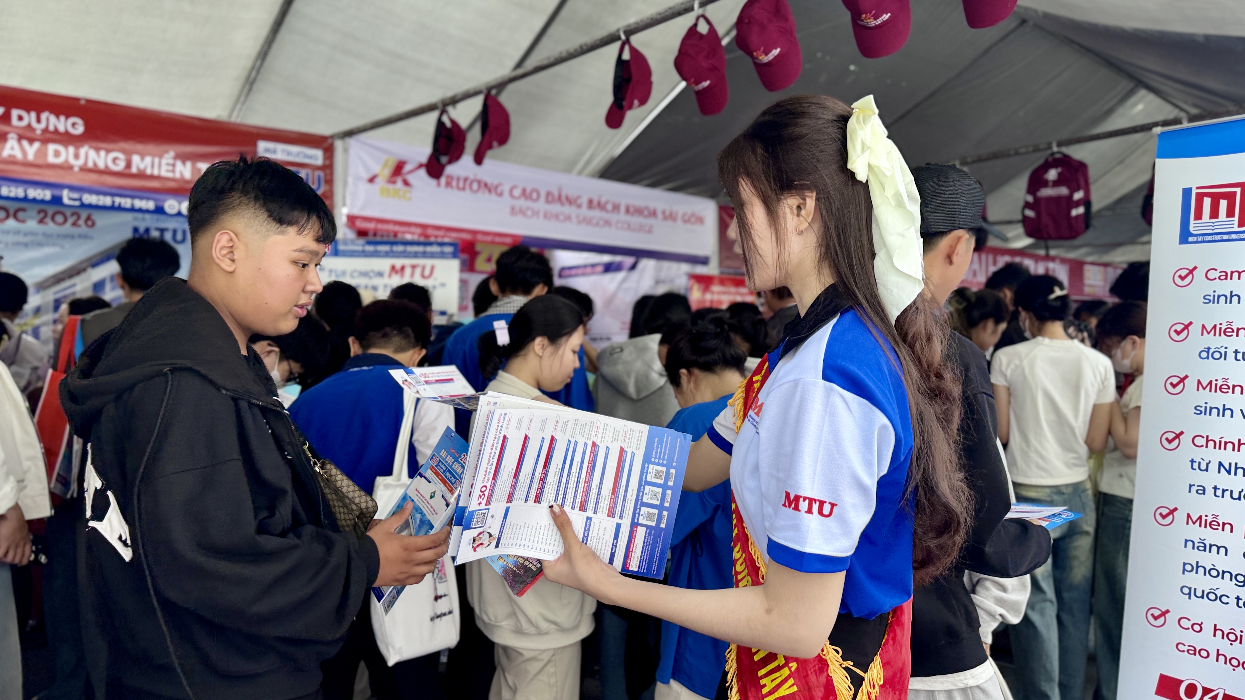 Đội ngũ tư vấn tuyển sinh MTU trực tiếp cung cấp thông tin về ngành học, phương thức tuyển sinh và giải đáp thắc mắc cho học sinh, phụ huynh.