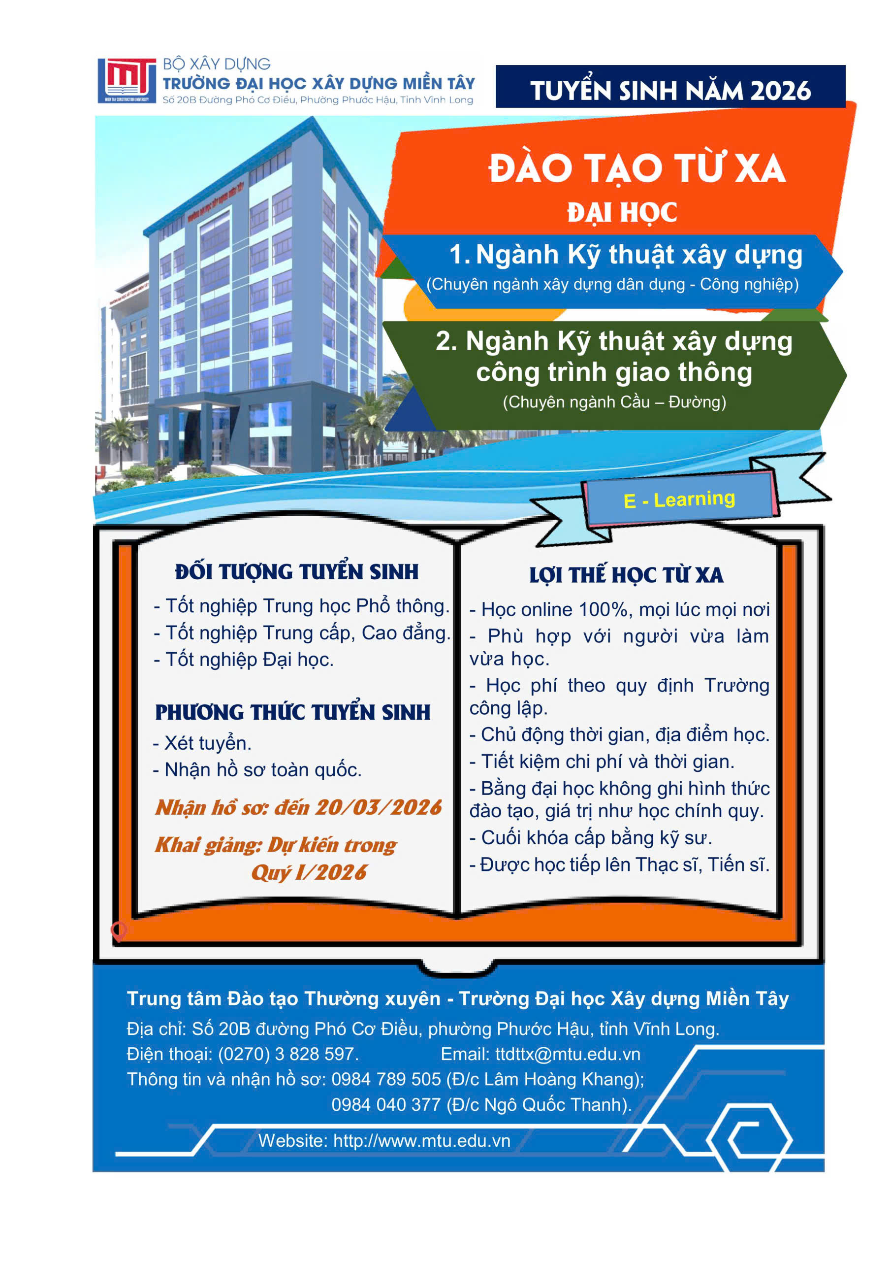 TUYỂN SINH ĐẠI HỌC ĐÀO TẠO TỪ XA (Đại học Xây dựng Miền Tây) NĂM 2026