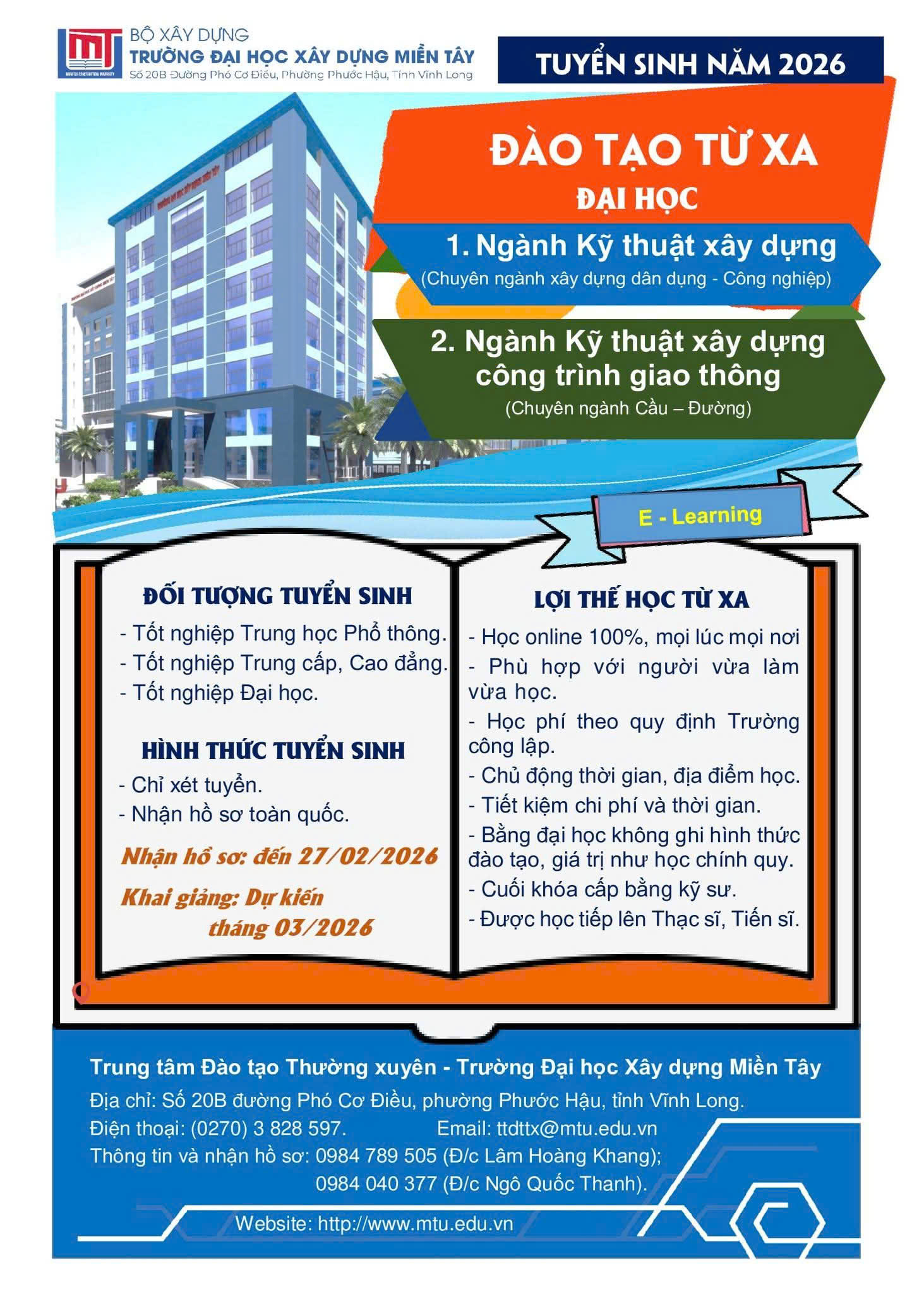 Copyright © 2013 Trường Đại học Xây dựng Miền Tây - Số 20B Phó Cơ Điều, Phường Phước Hậu, Tỉnh Vĩnh Long